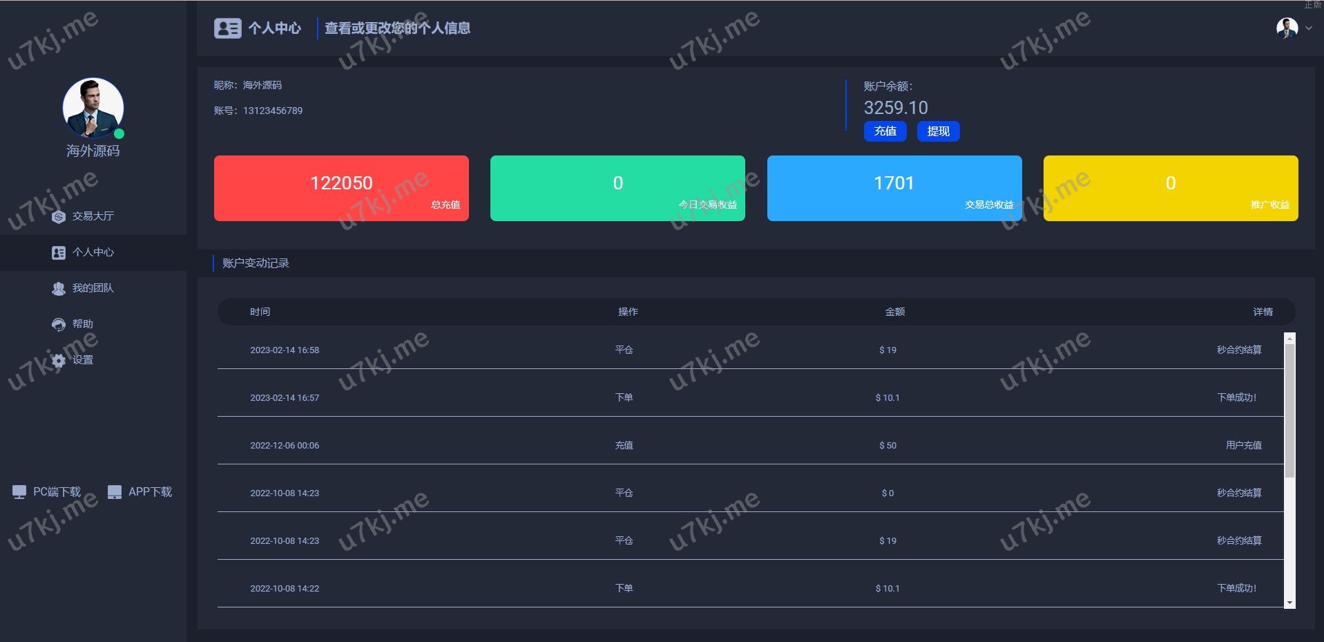 ui微交易系统 微盘秒合约源码 pc版微盘 虚拟币交易所源码