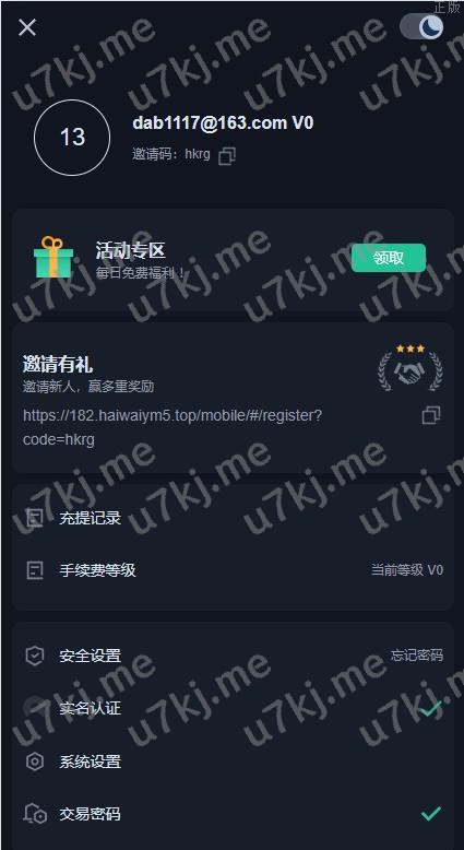支持币币交易、秒合约交易、矿机质押、邀请推广等一些大众功能
