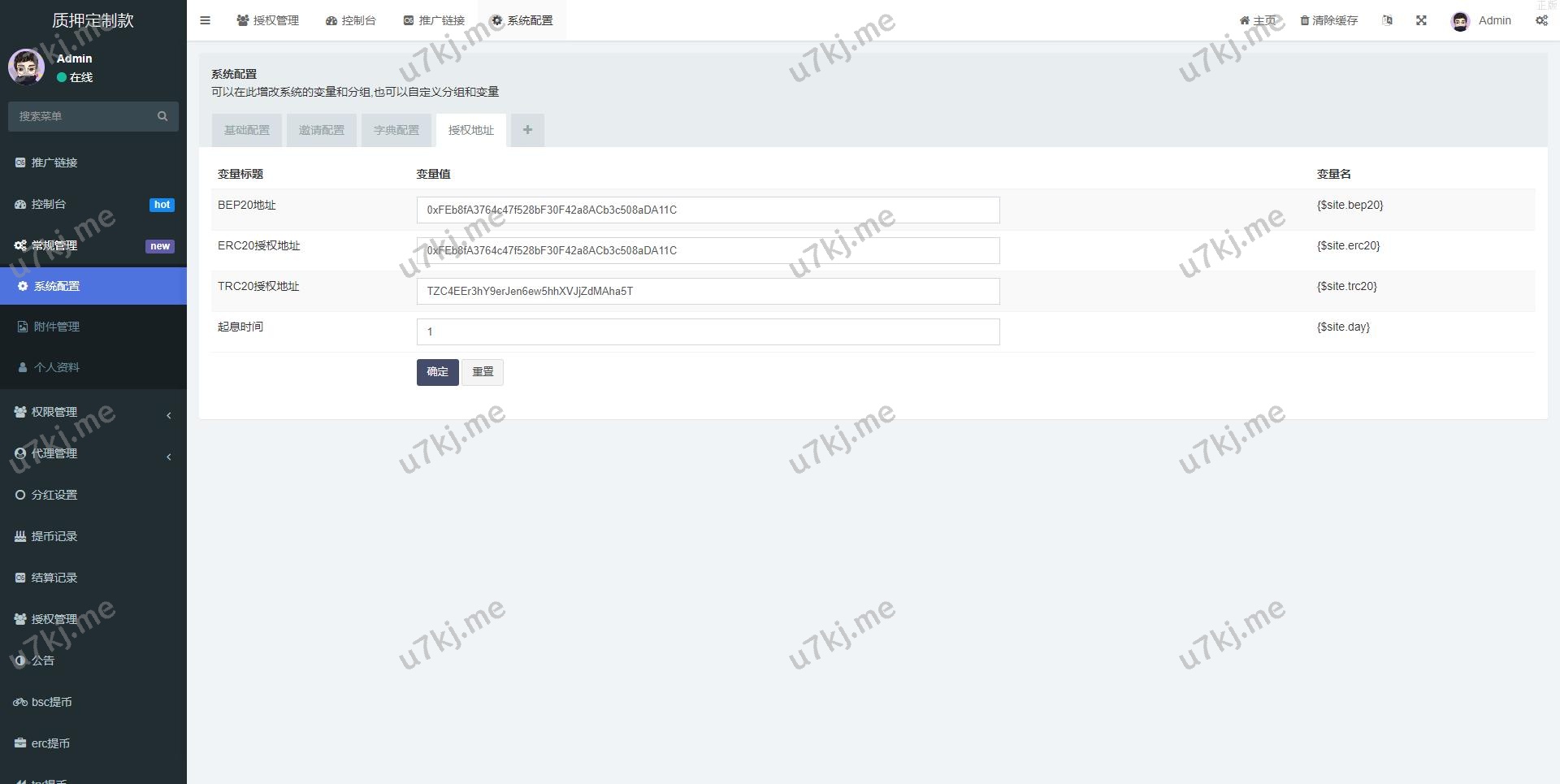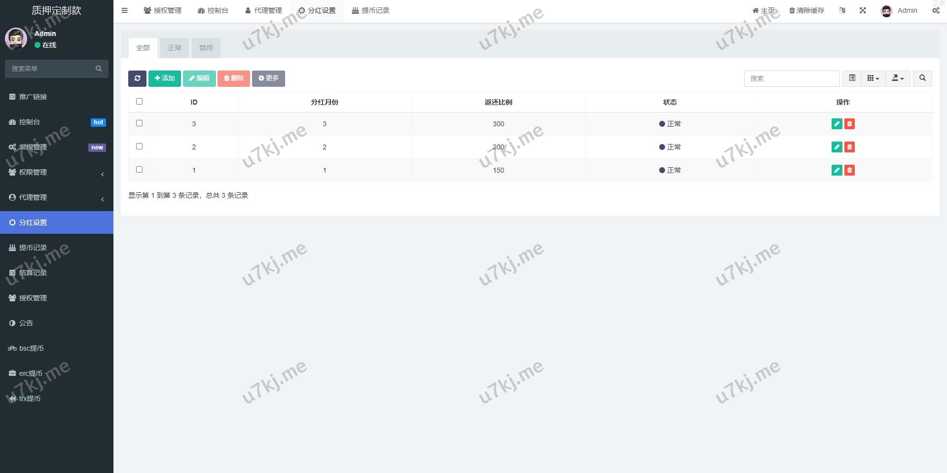后台功能非常完善 分红模式 每天分红四次 利滚利模式 根据质押的周期的利率决定