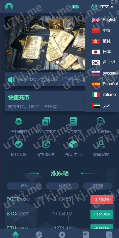 多个语言交易所系统 合约期权交易所 理财认购矿机