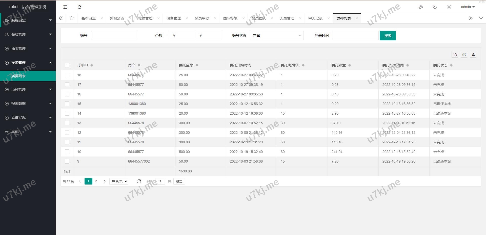 系统是区块代码币种投资模式,根据不同的币种投资,每天产生收益