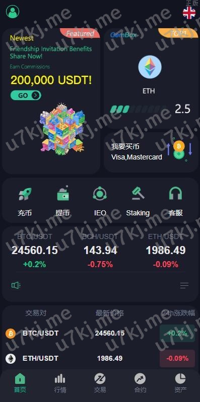 系统8种语言,支持币币合约交易、新币申购、智能挖矿等功能