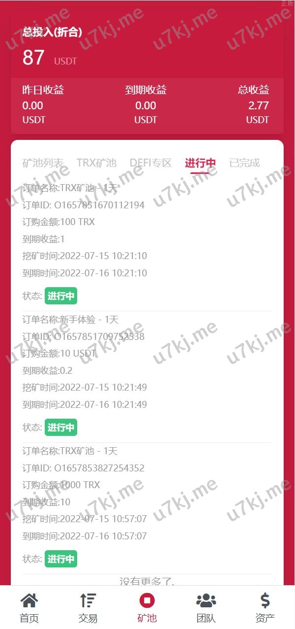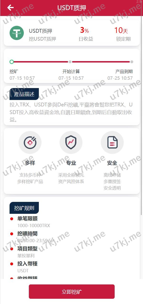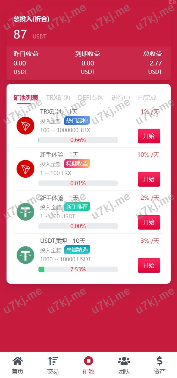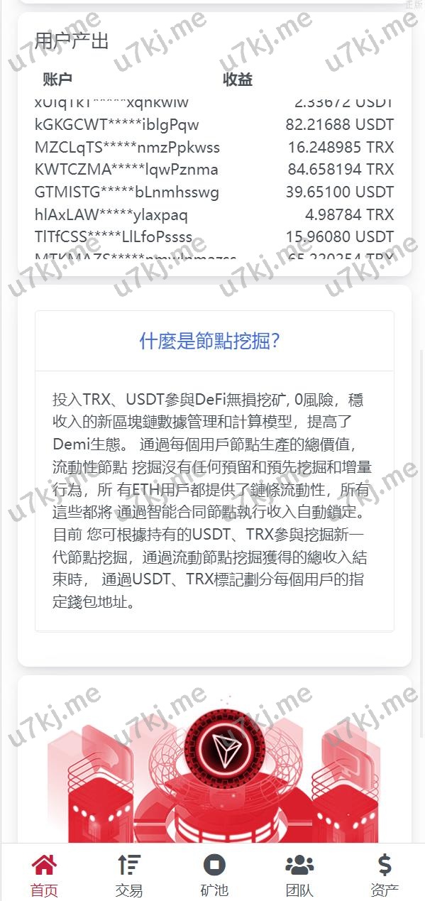 USD₮ trx区块代码理财系统 质押挖矿 云算力矿机系统