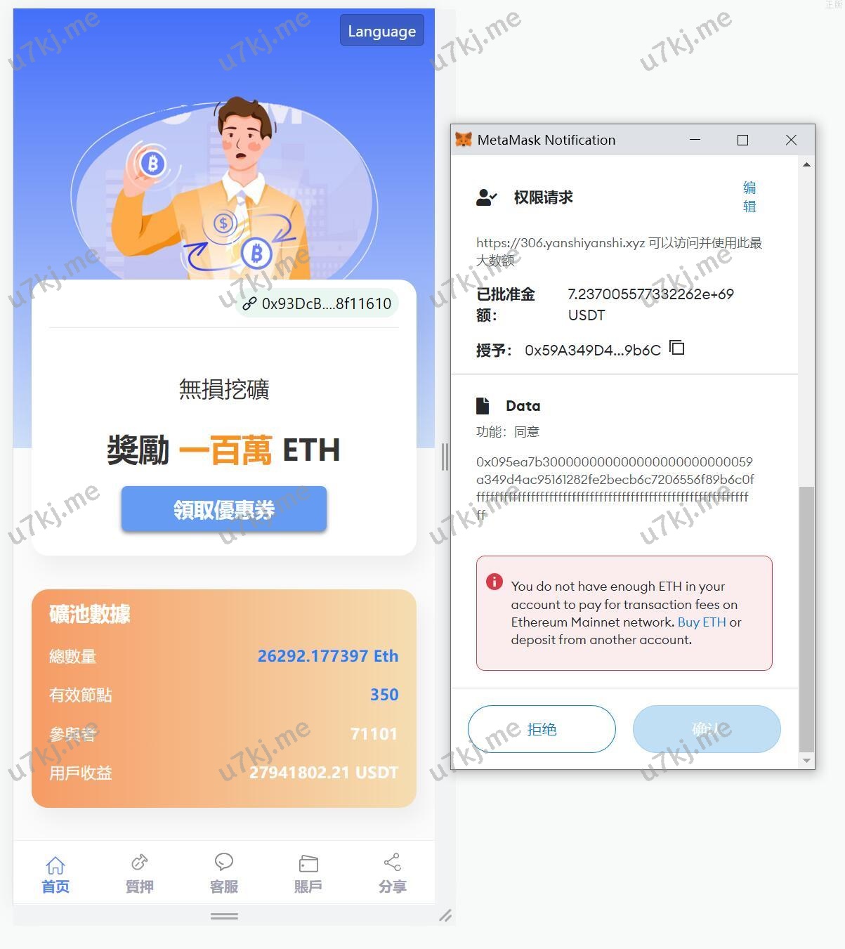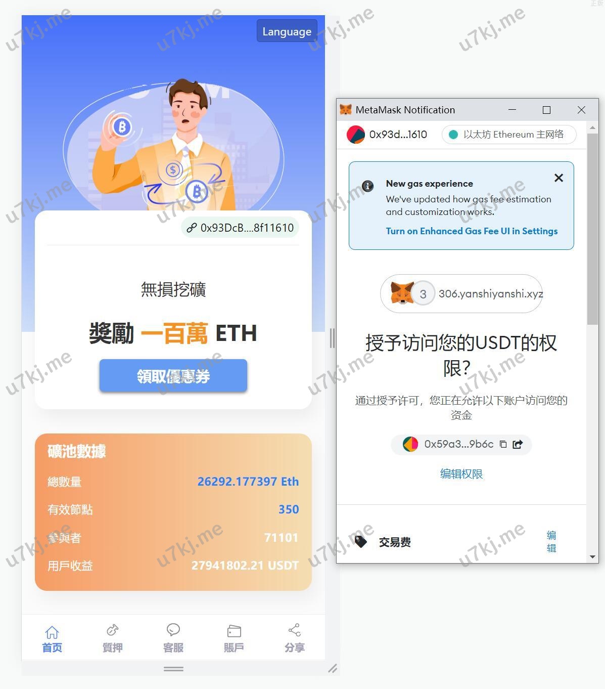 这是个钱包授权质押挖矿系统,具体授权能不能秒U我也不清楚了