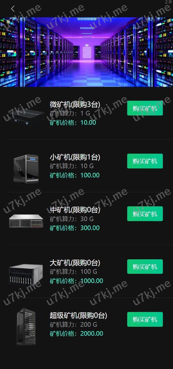 3.小型云矿机100个币,(限购1台)