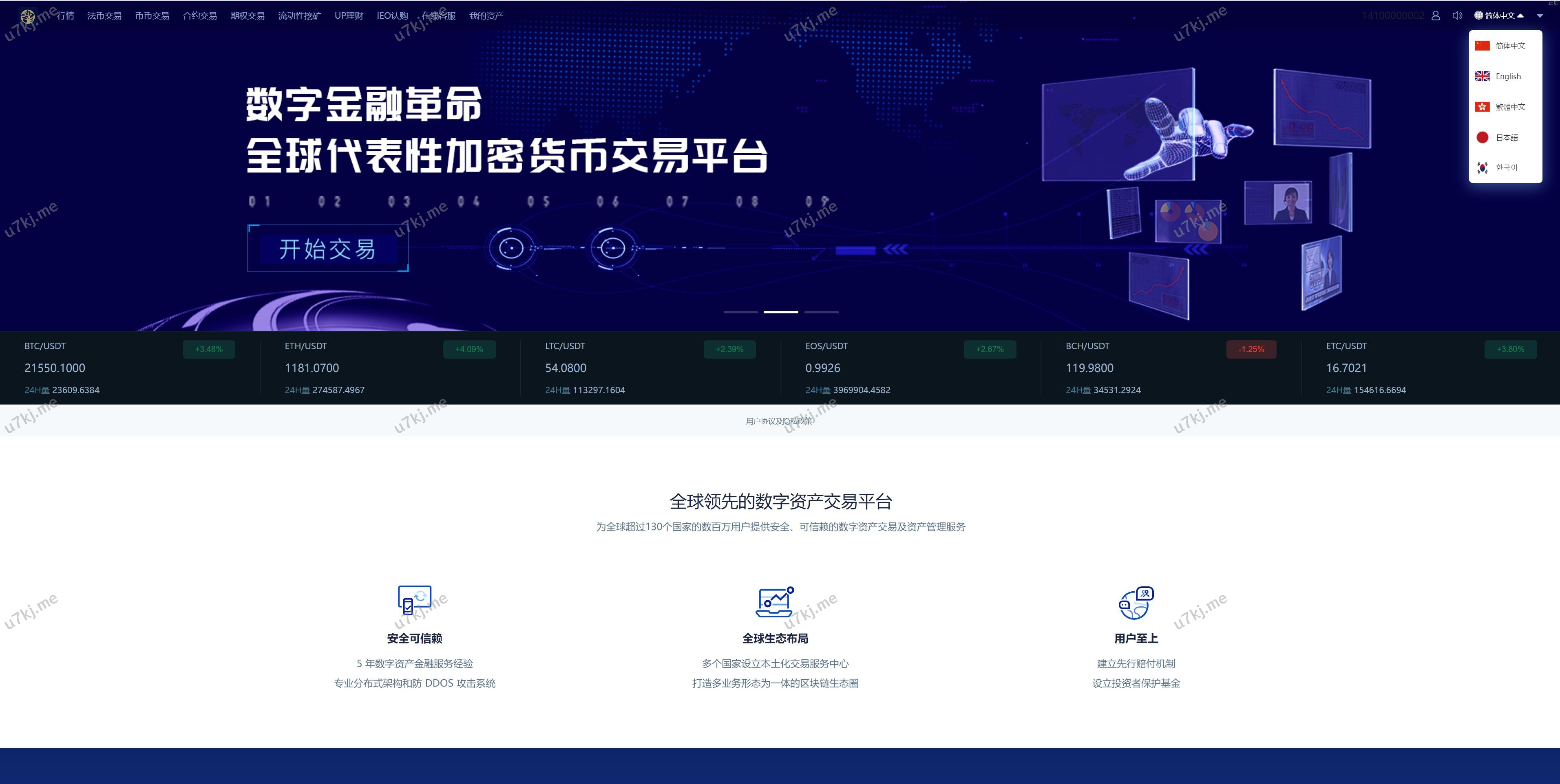 此套手机版是十二种语言,锁仓挖矿、IEO认购、币币、秒合约等功能
