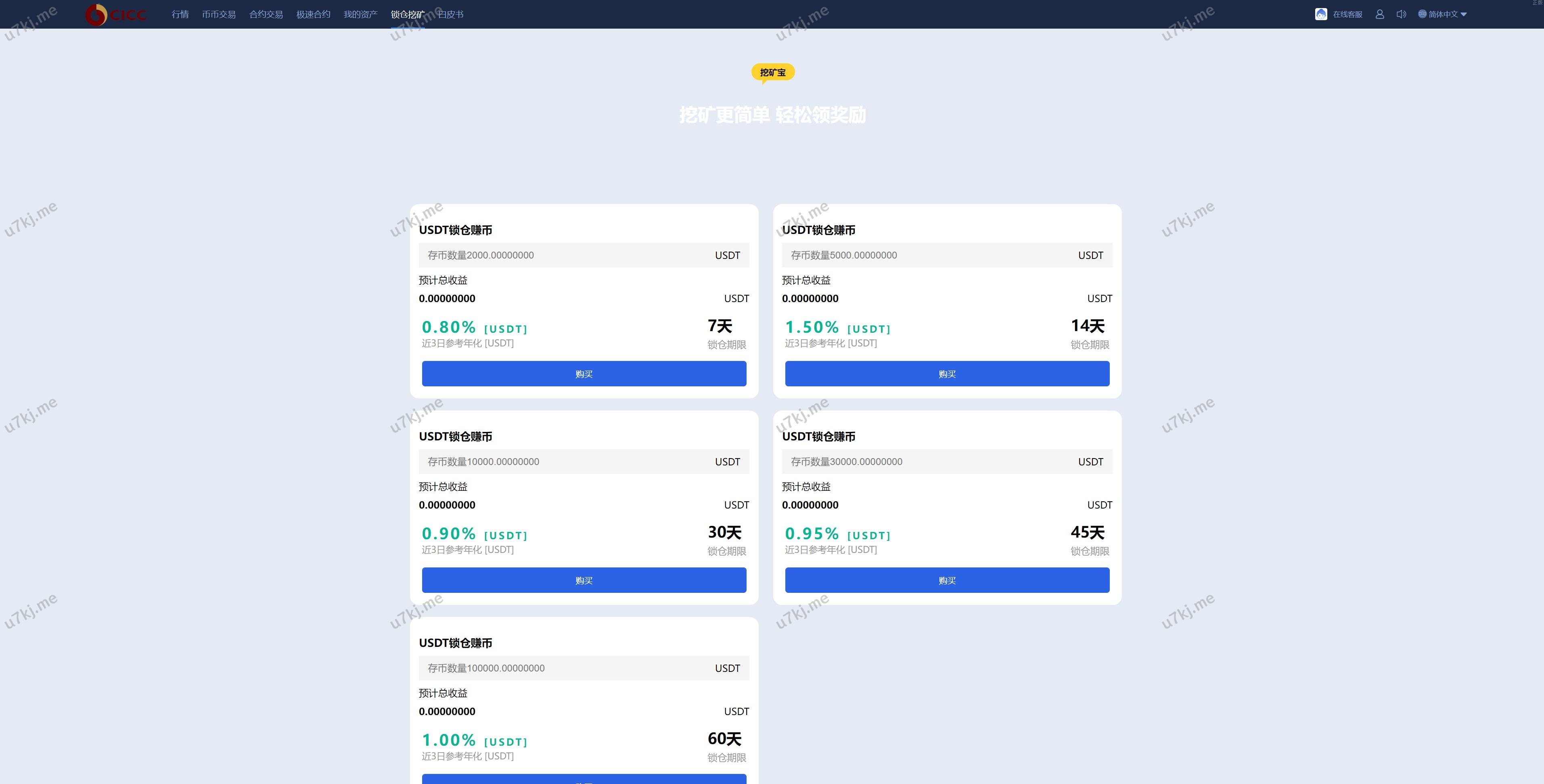此套是以前的一套交易所二开的UI,支持锁仓挖矿、币币、法币、秒合约,算是比较全的一套交易所了