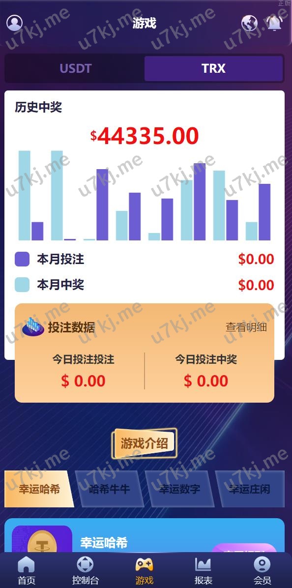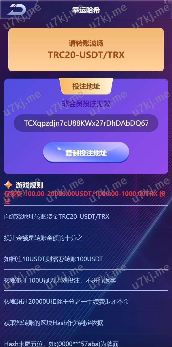 游戏有:幸运哈希、哈希牛牛、幸运数字、幸运庄闲、哈希PC10、哈希PK10