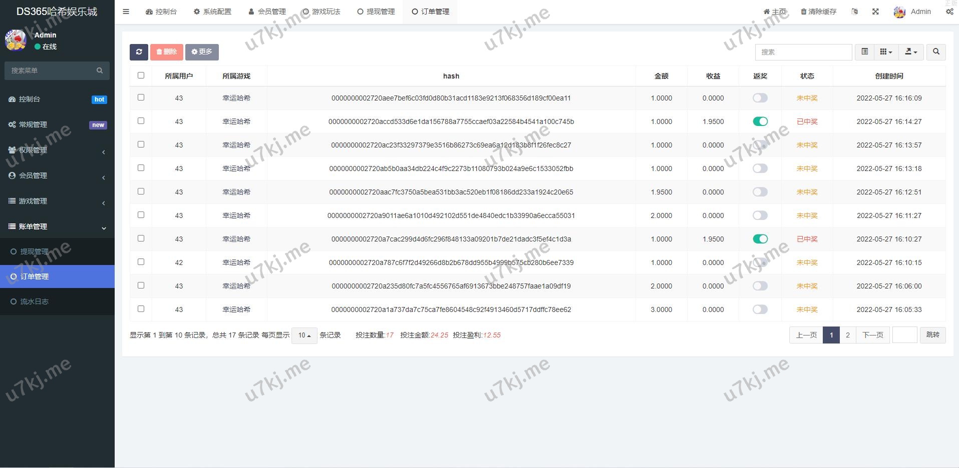 系统包含游戏:幸运哈希、哈希牛魔王、哈希双龙、庄闲合