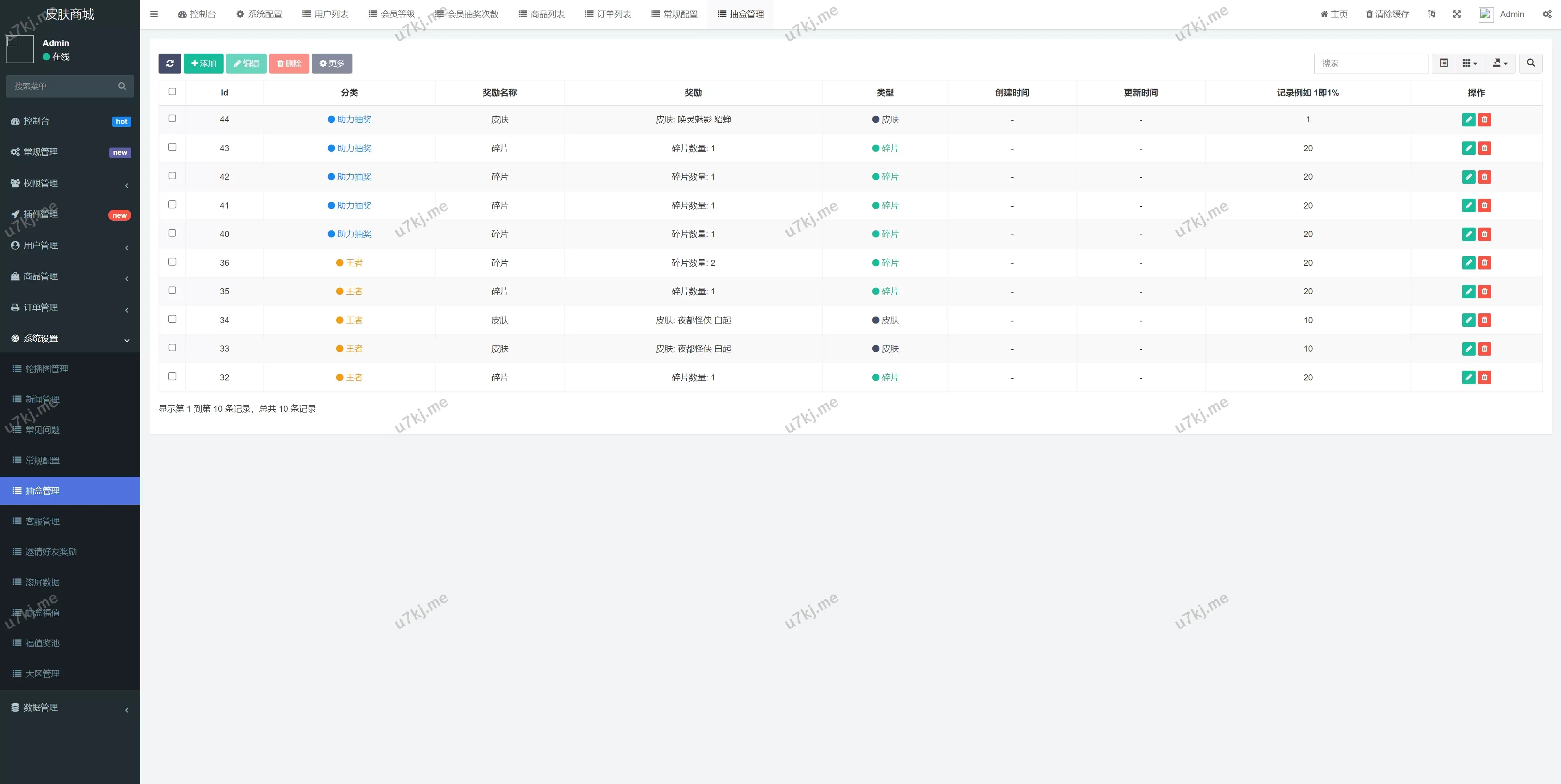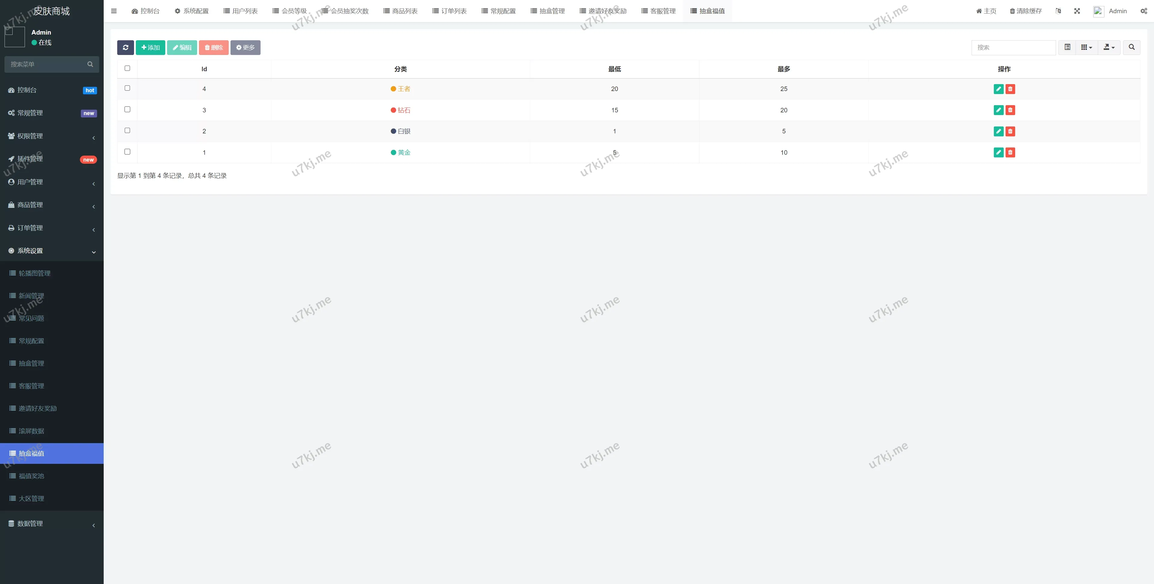 此源码为二开的,前端主打游戏皮肤抽奖模式