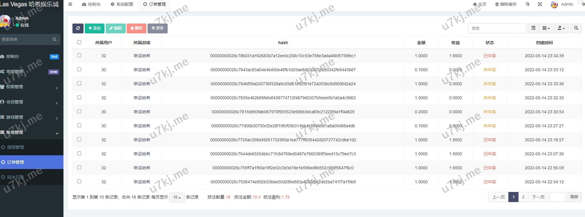系统包含游戏:幸运哈希、哈希牛魔王、哈希双龙、庄闲合