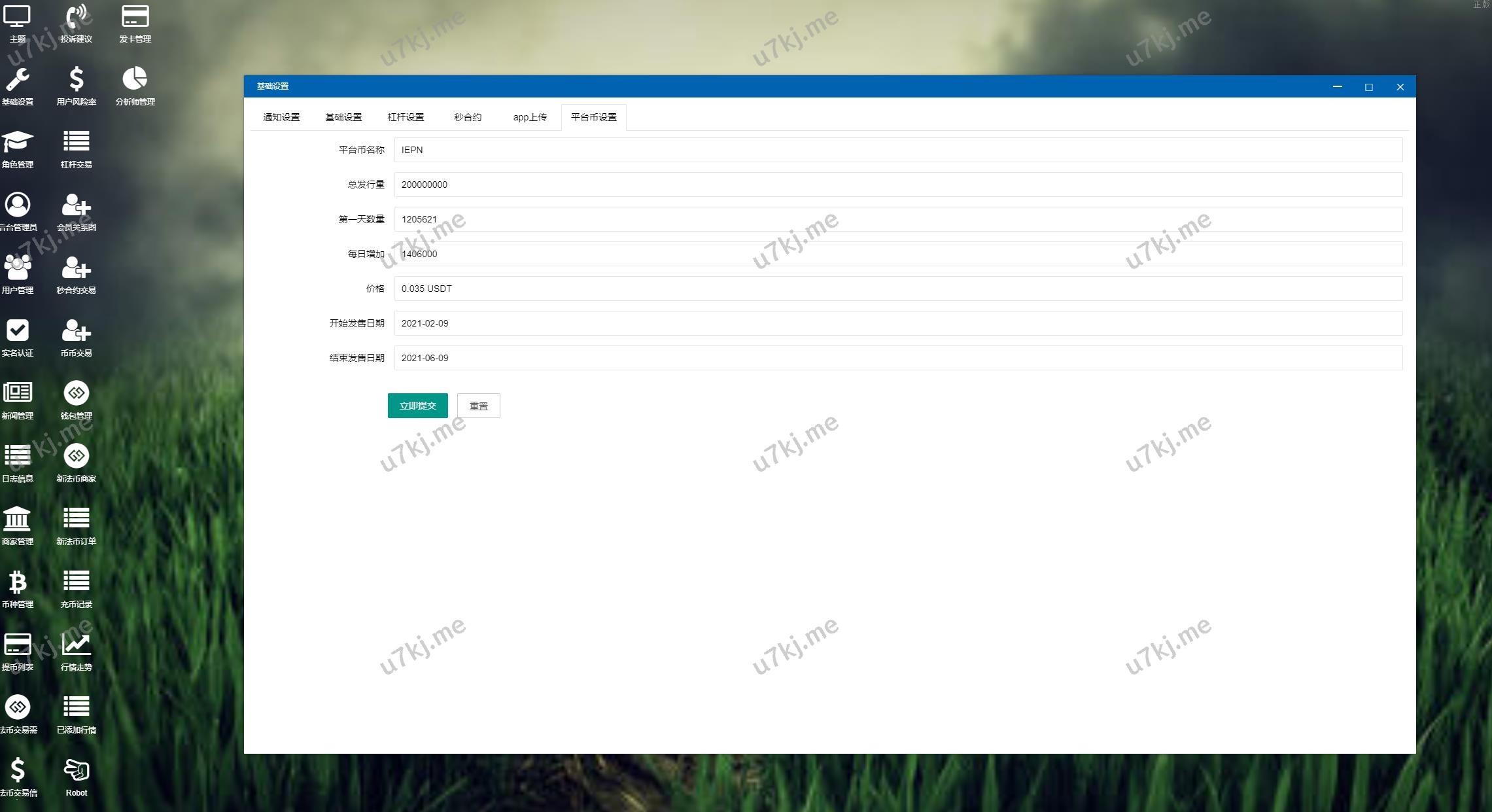 4、币种管理(币种的添加设置、提币账户管理、是否显示、交易对管理)