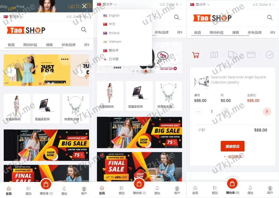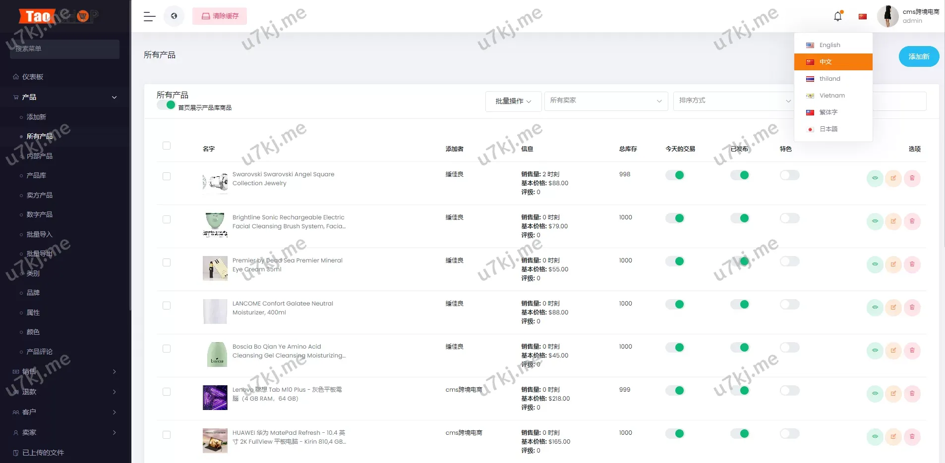 多个语言电商源码,前端多种语言切换,支持后台添加任意语言