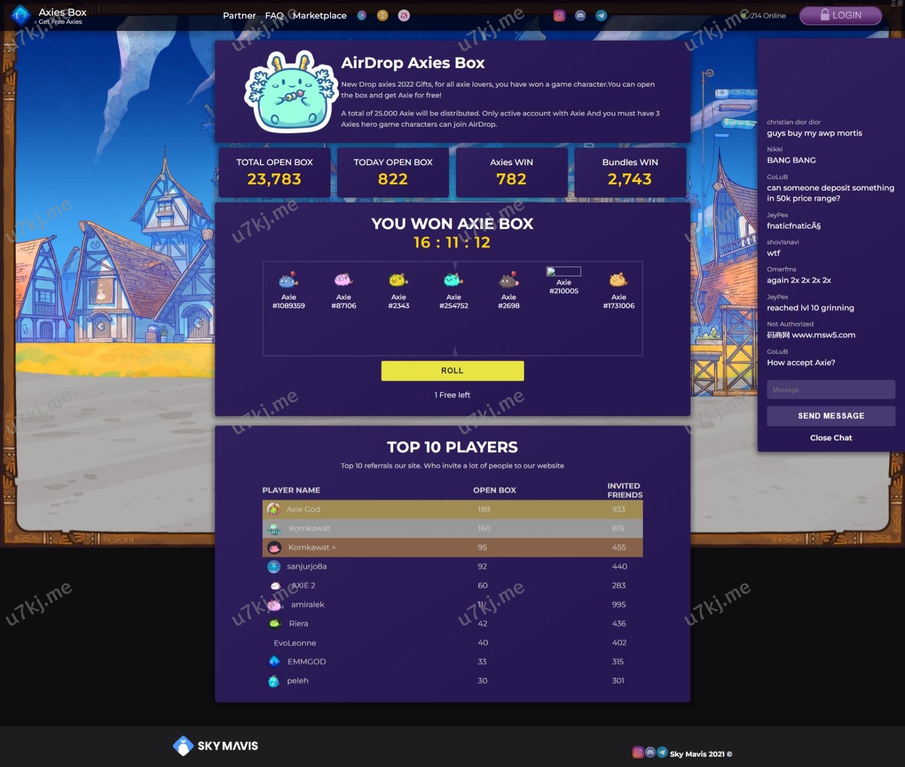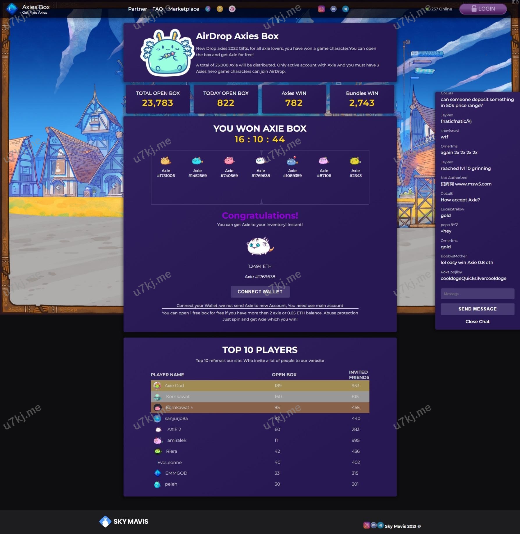 开发海外Axies空投箱系统,用户前端抽奖