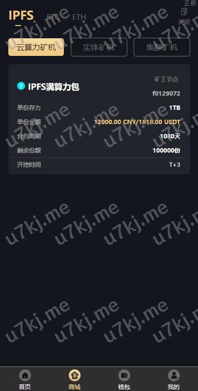 9、云矿机购买页面可以选择开放矿机购买页面。