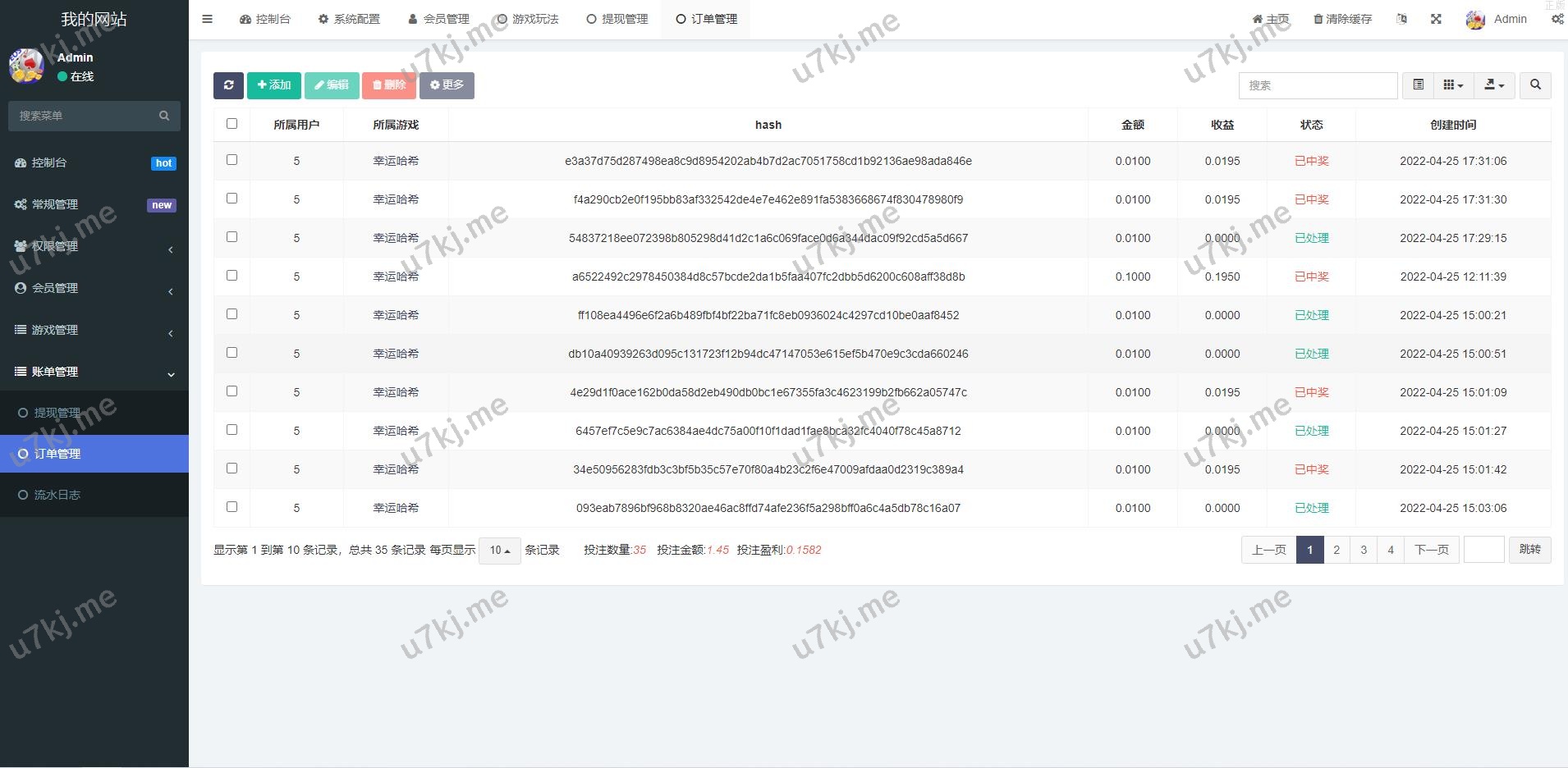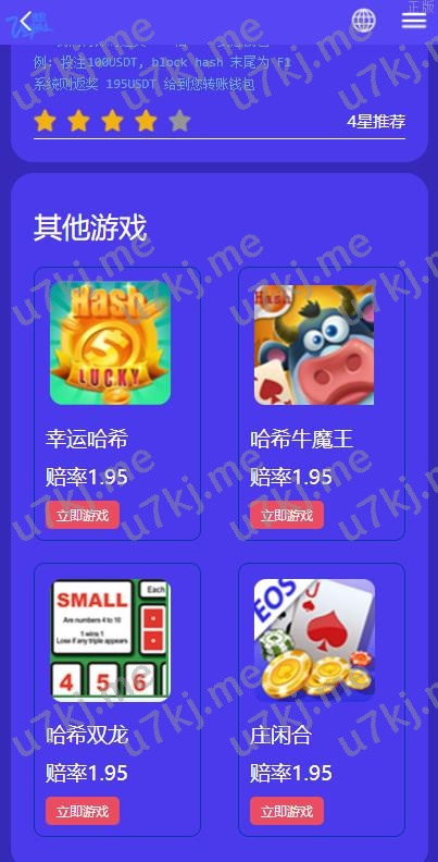 系统包含游戏:幸运哈希、哈希牛魔王、哈希双龙、庄闲合