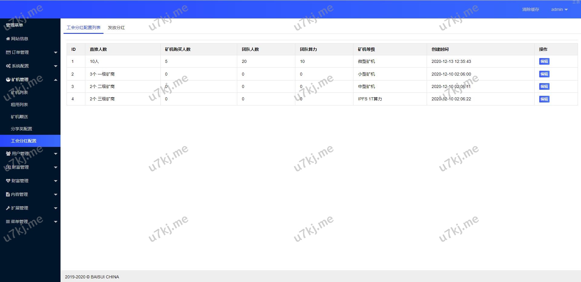 一级矿商:直接推荐5人,三级以内团队30人,三级以内要有15人买,工会算力达到100G,送小型云1台,享受交易佣金30%的全球分红