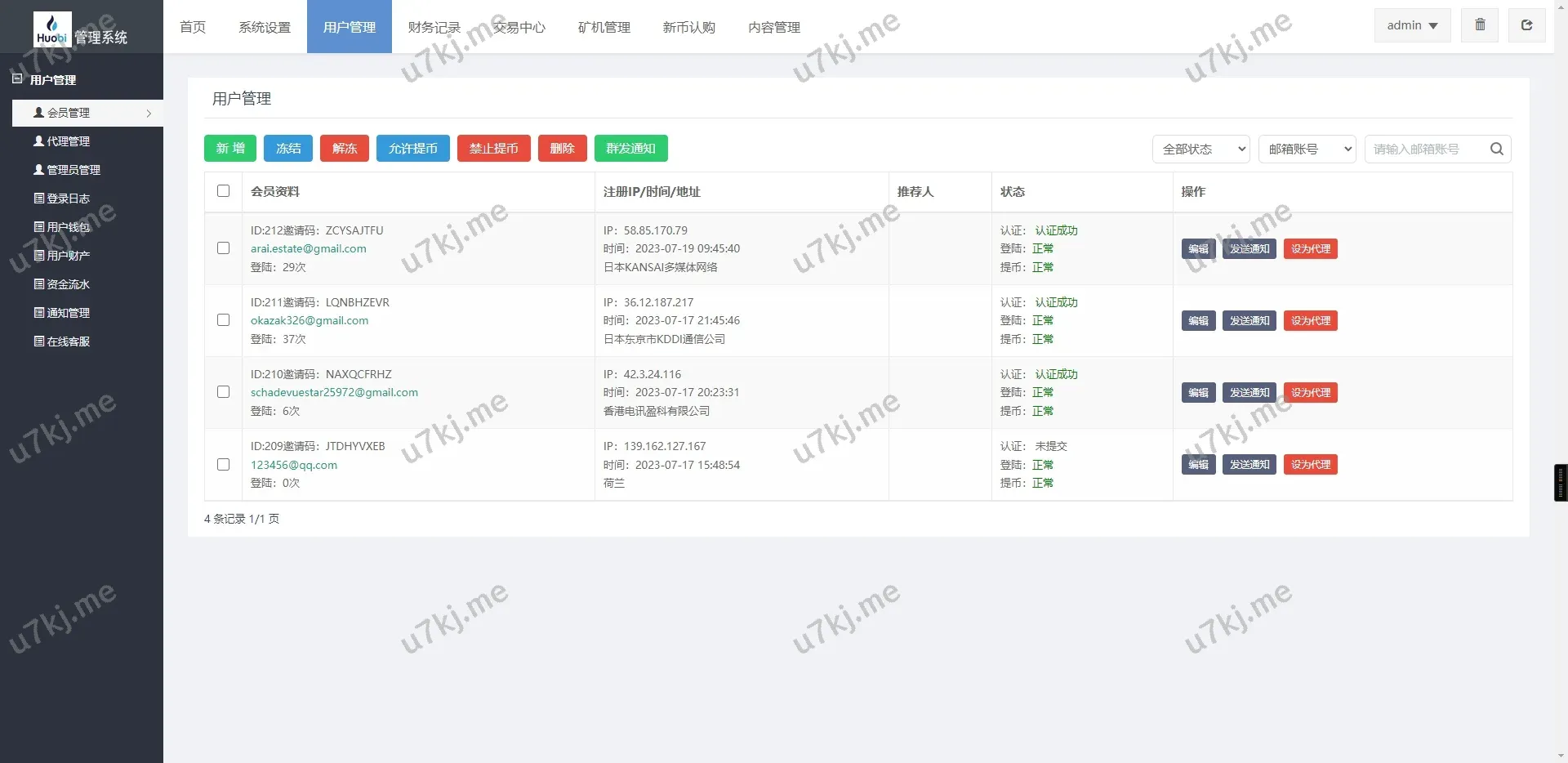 ✅ 充值提现:虚拟币充值提现审核、风控管理。