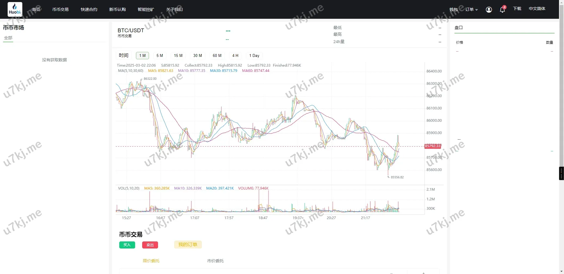 ✅ 行情管理:K线图、深度图、市场数据采集(支持火币API)。