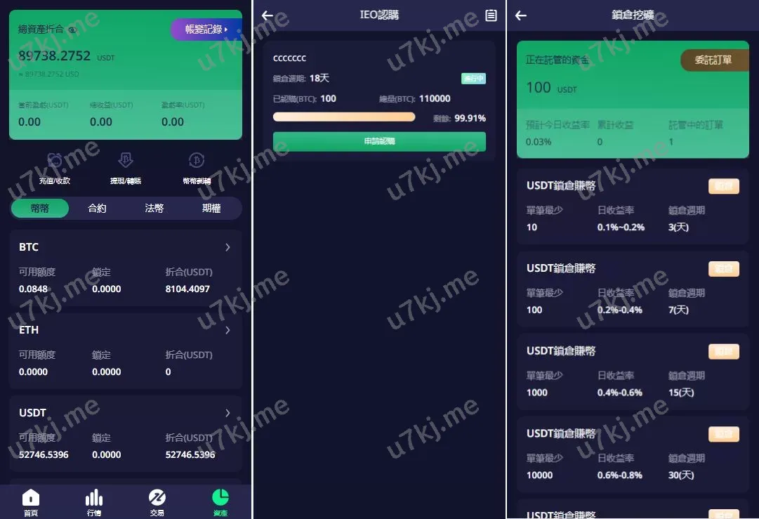 - 期权交易:秒合约和期权操作,提供盈利机会。