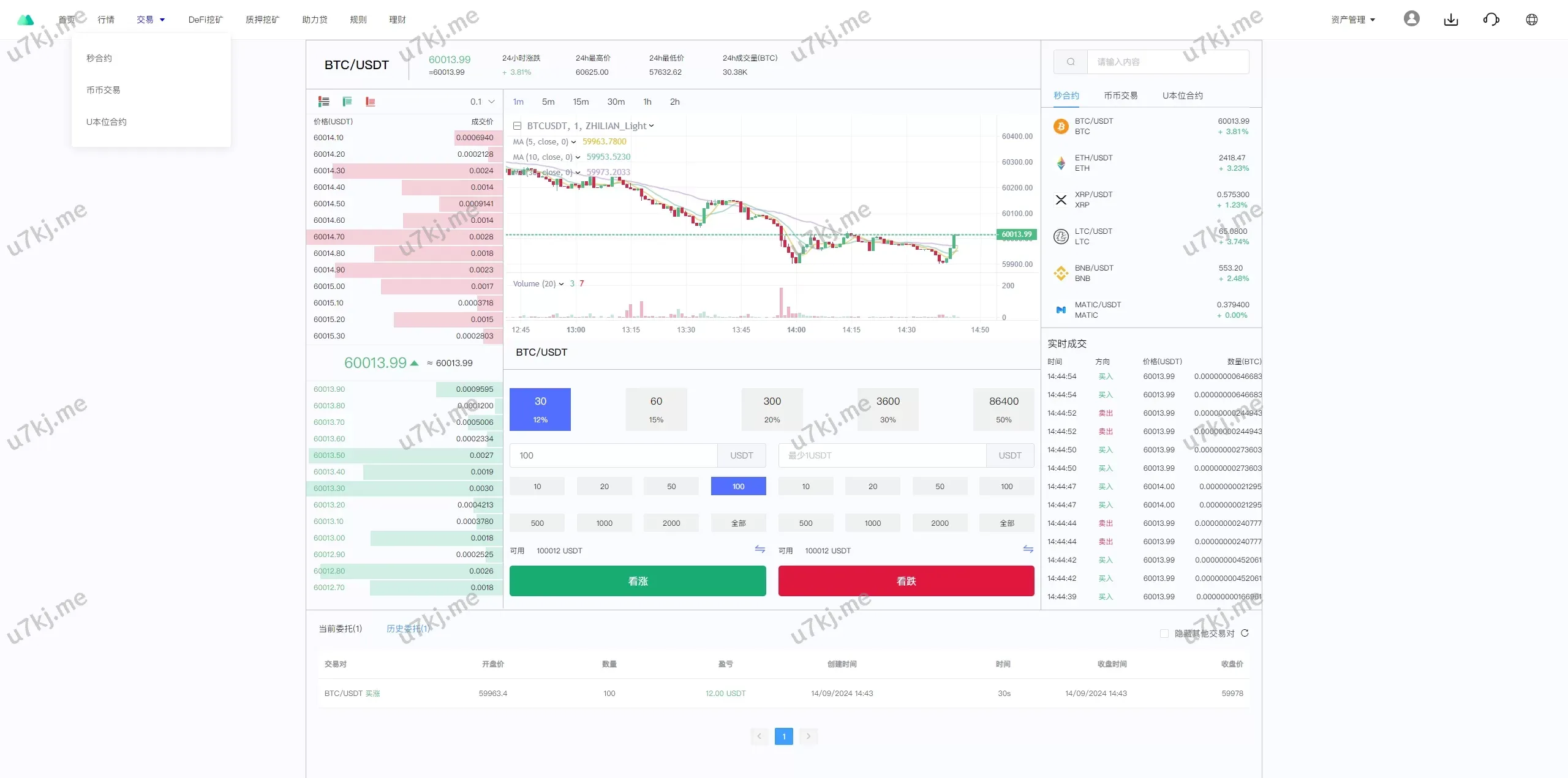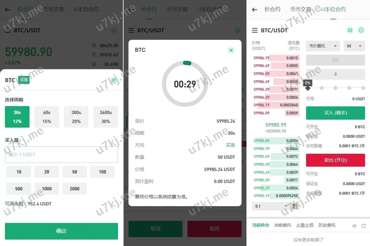 - 秒合约:极速合约交易,适合短期市场波动操作。