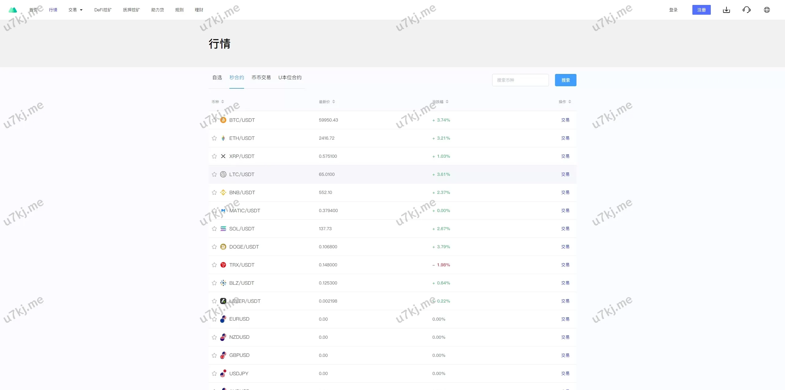 - 币币交易:支持多种虚拟货币的交易。