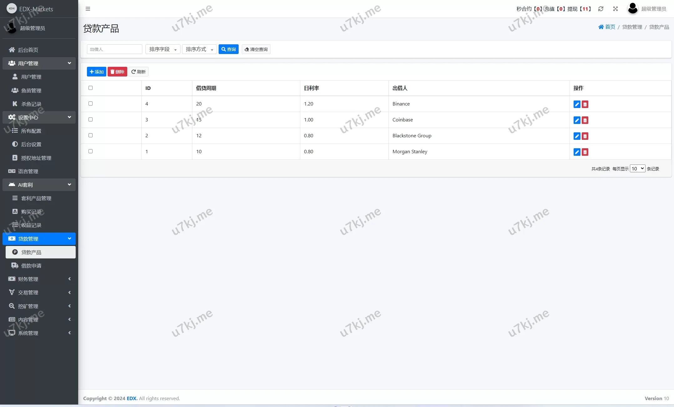 - 借贷:提供数字资产借贷功能,支持多种虚拟资产借贷。