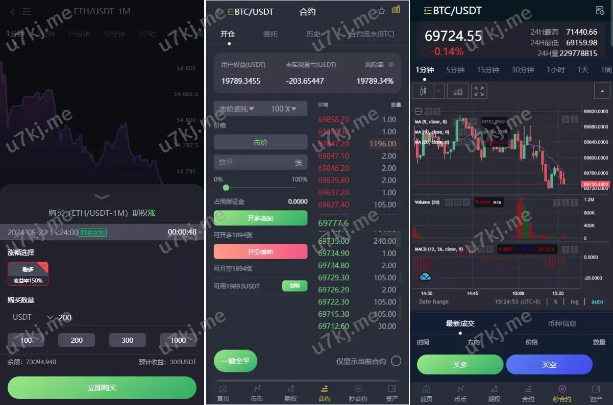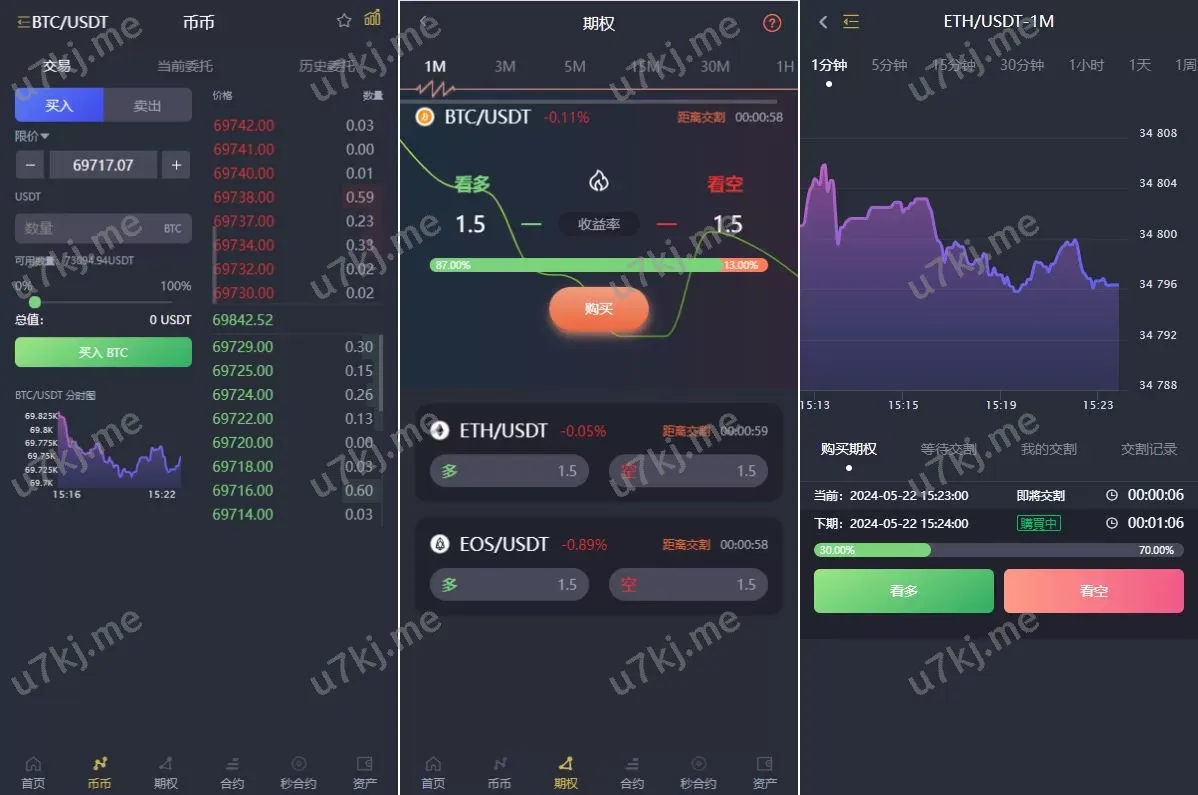 🔹 合约交易与秒合约:提供 期权交易、合约交易 和 秒合约交易 功能,满足不同类型的投资需求。