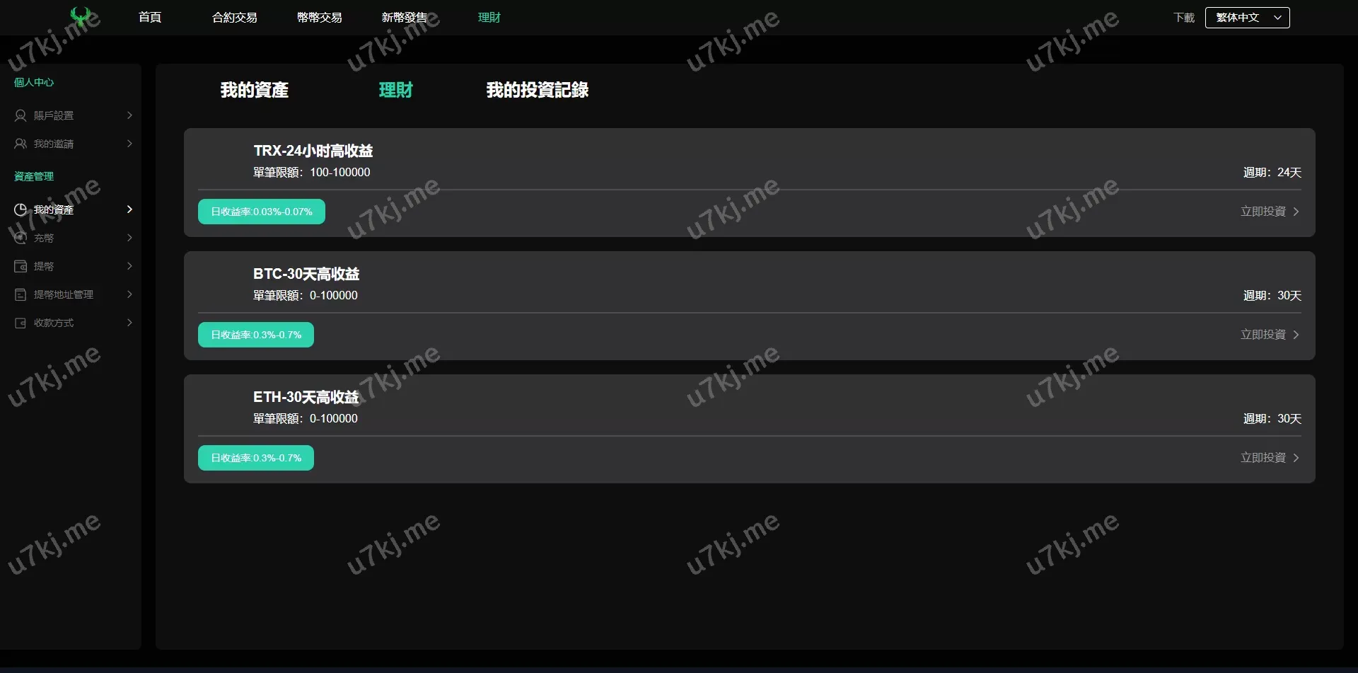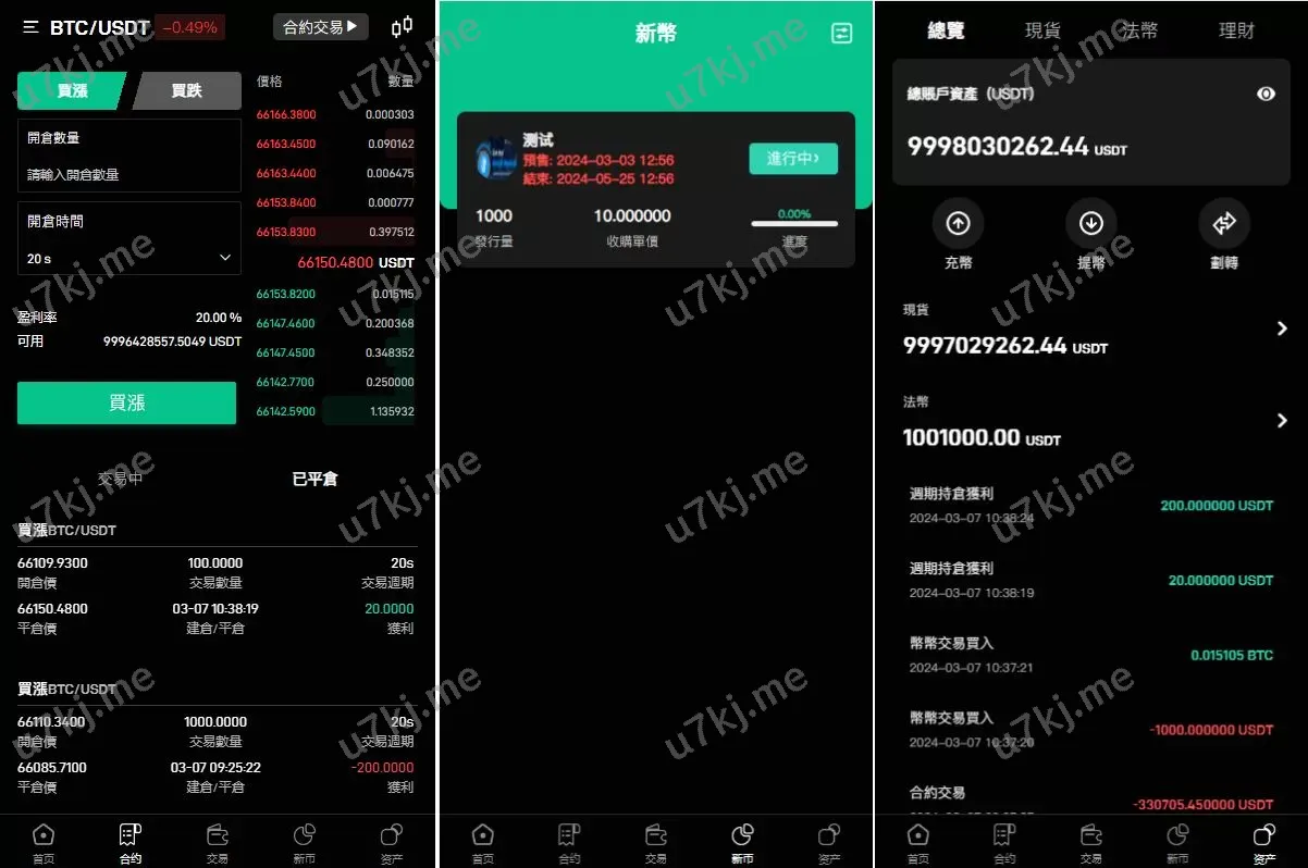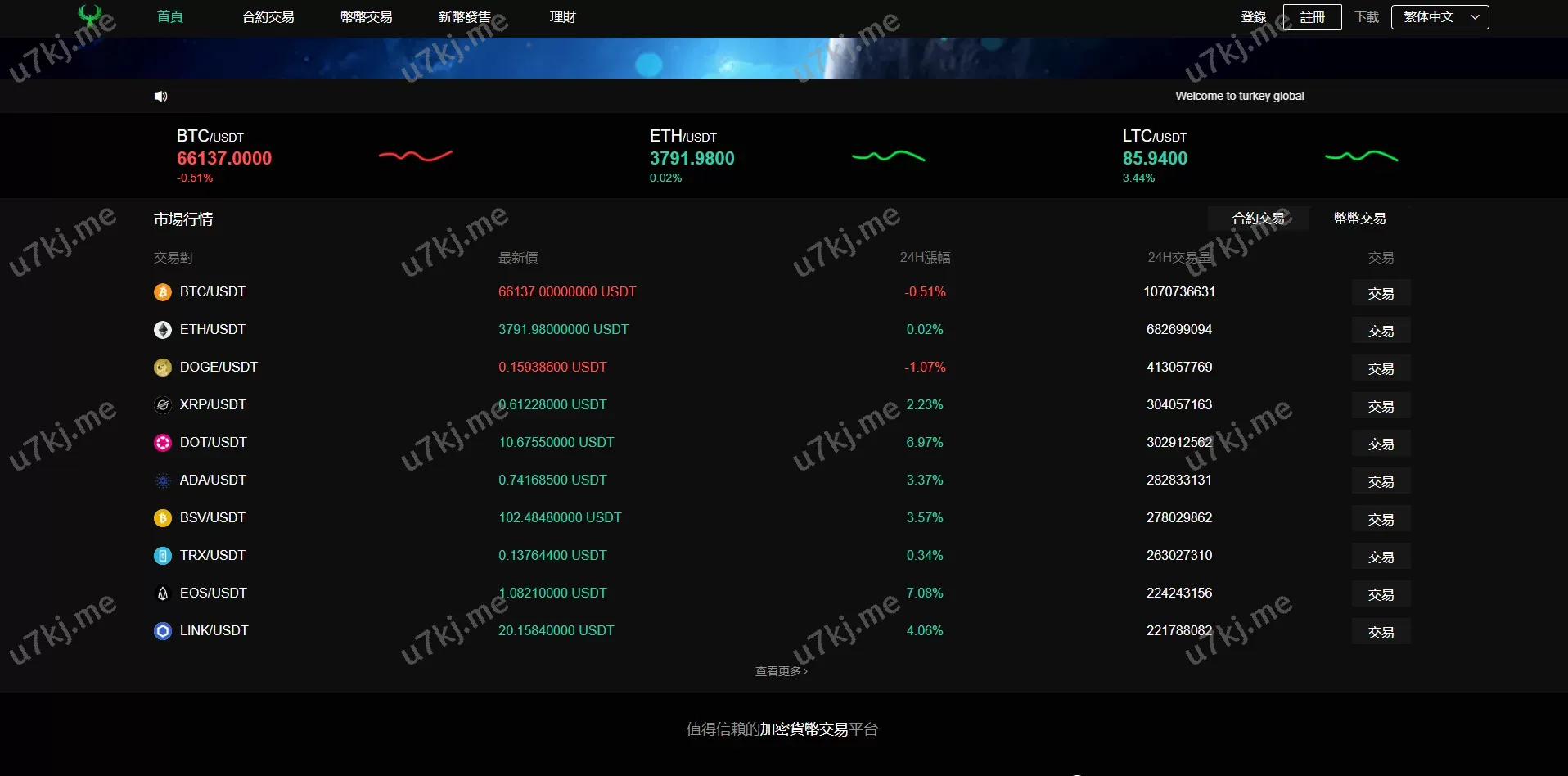 - 功能全面:不仅支持常见的币币交易,还包括 合约交易、秒合约、C2C交易、认购、质押投资 等多种业务功能,功能覆盖面广。