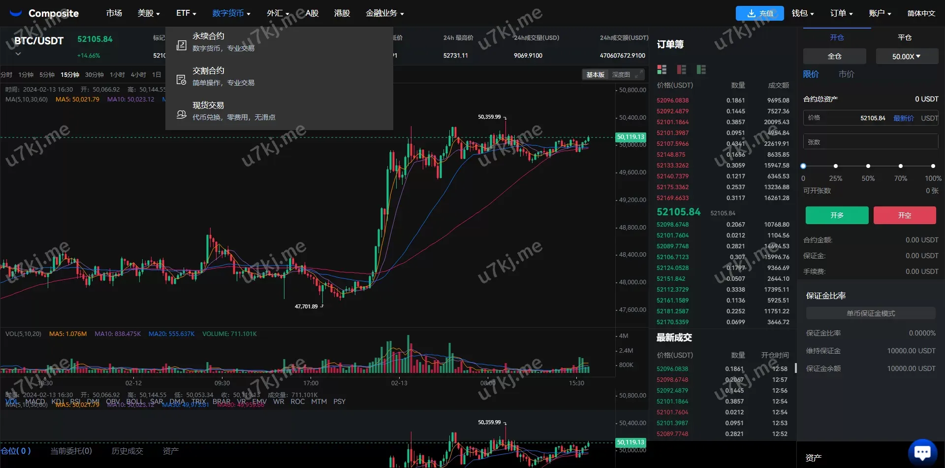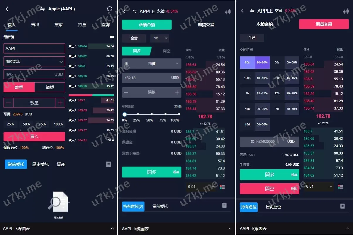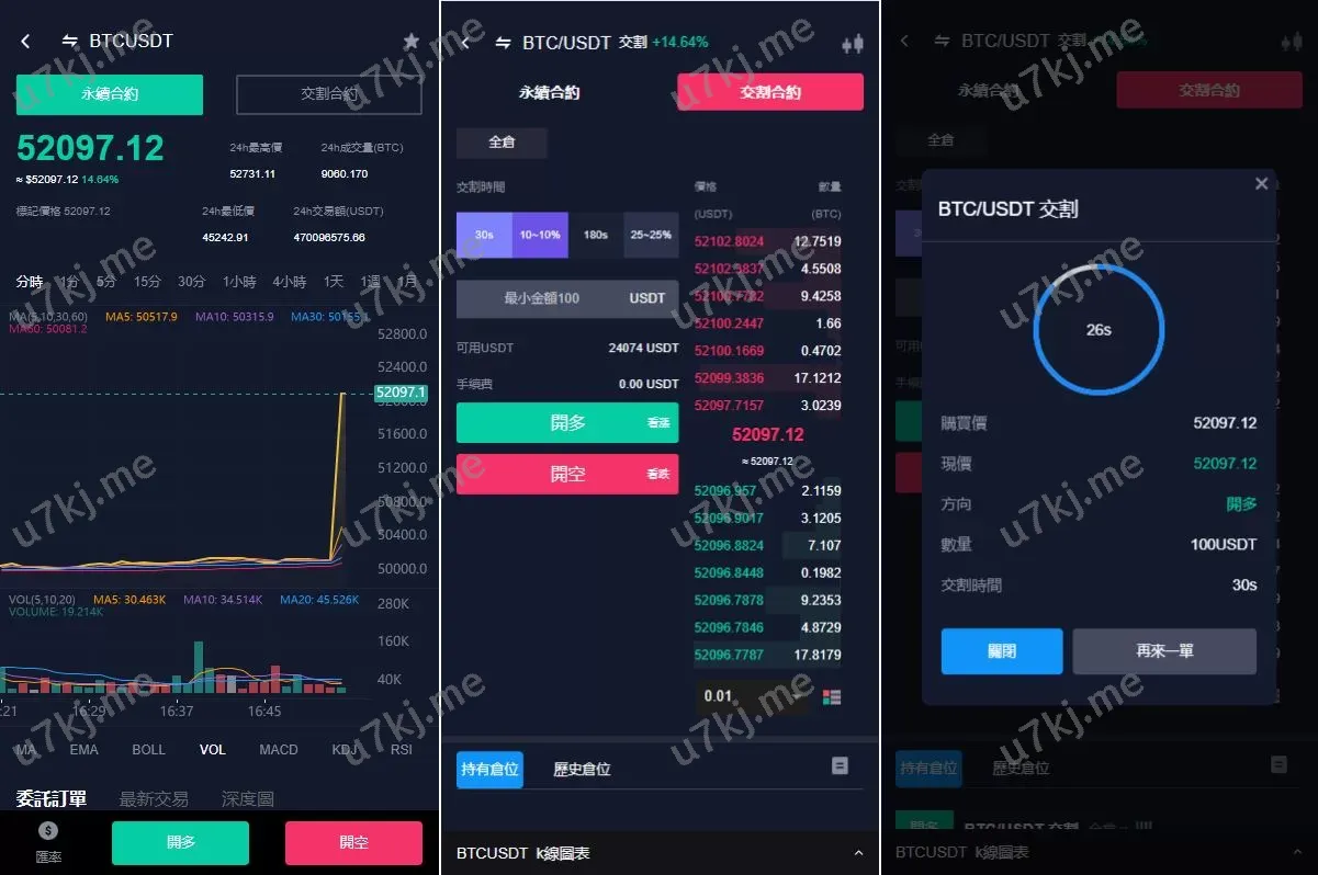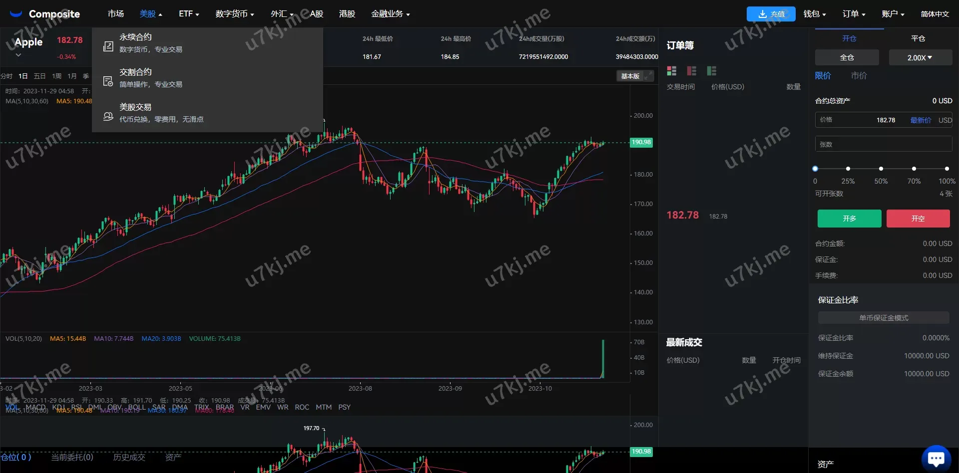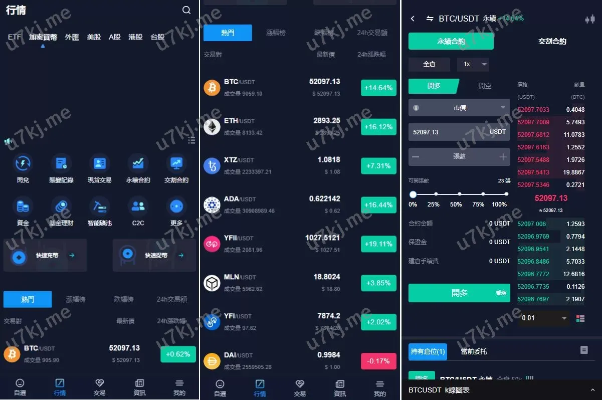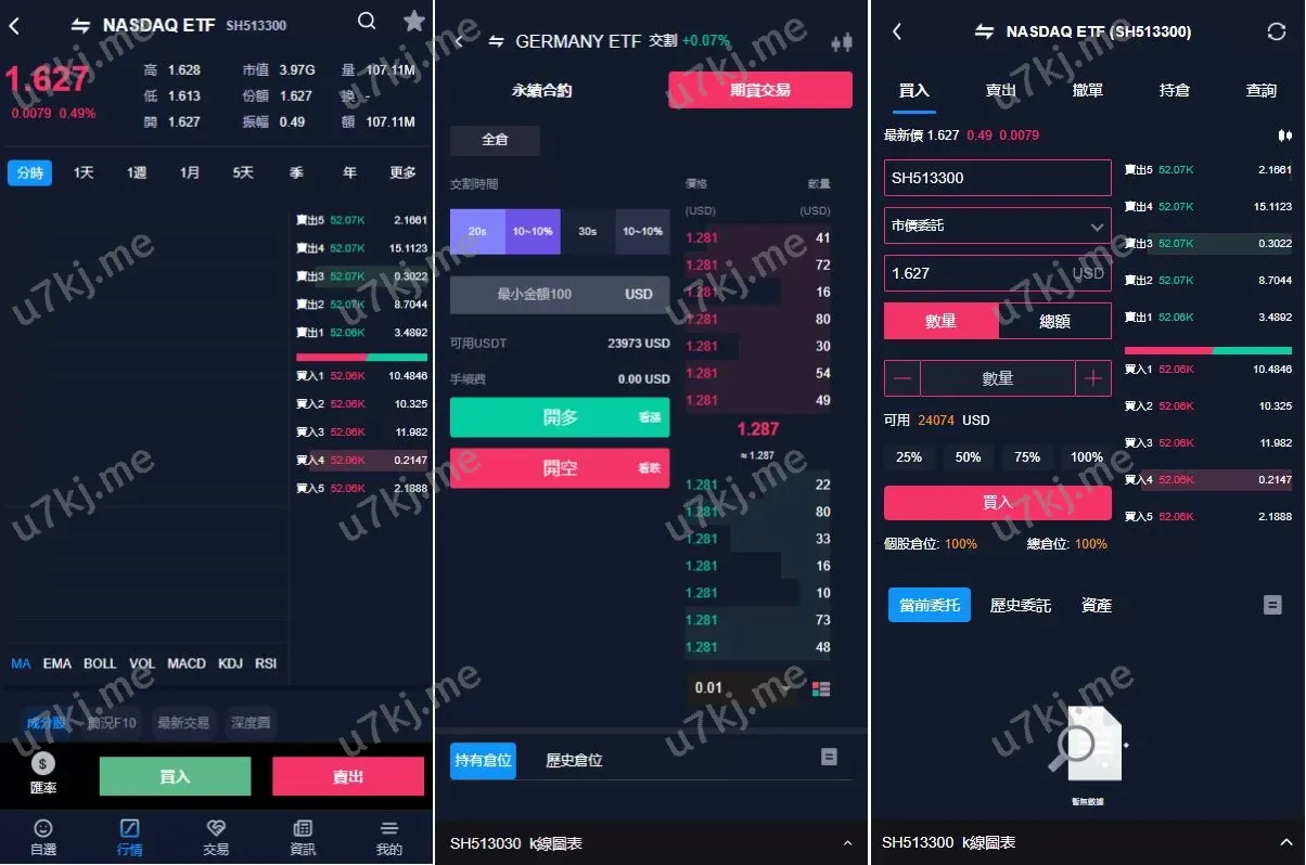 - K线图支持:虚拟币的 K线图 功能正常,其他交易品种的K线需要自行修复。