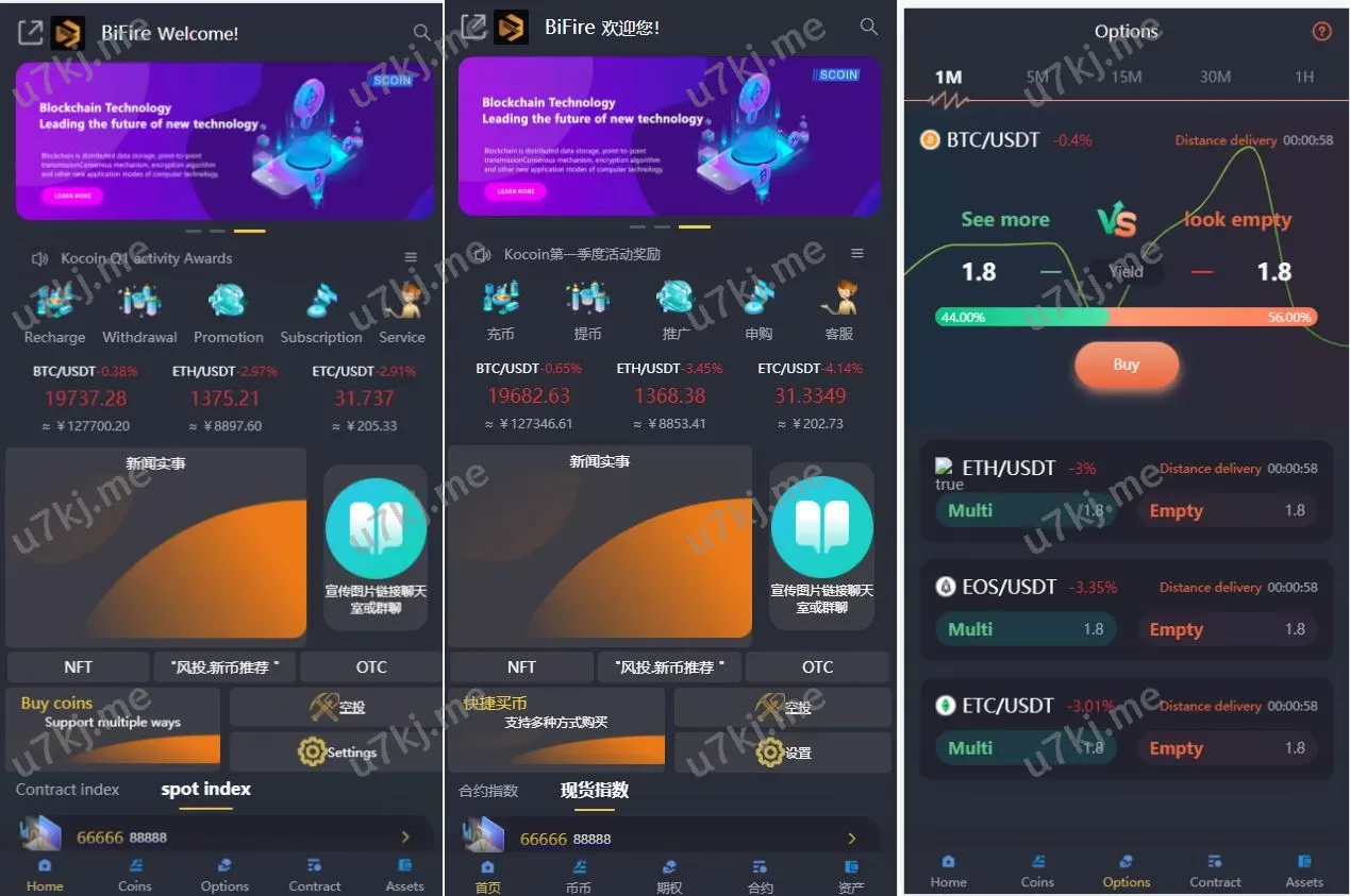 多个语言区块代码精品所源码/期权交易/申购/币币秒合约交易所源码