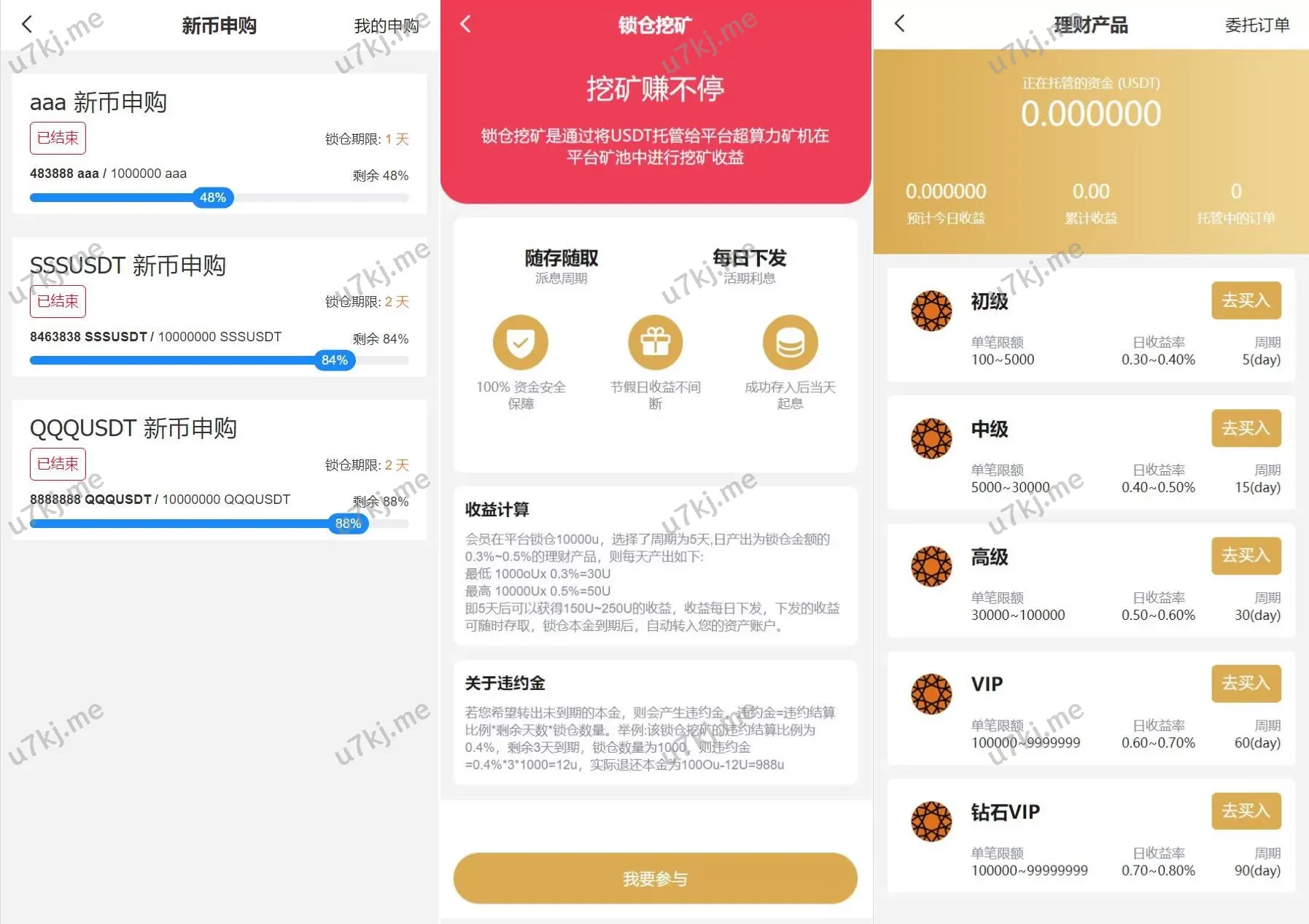 - 质押挖矿:用户可以通过质押数字资产来参与挖矿,获取收益。