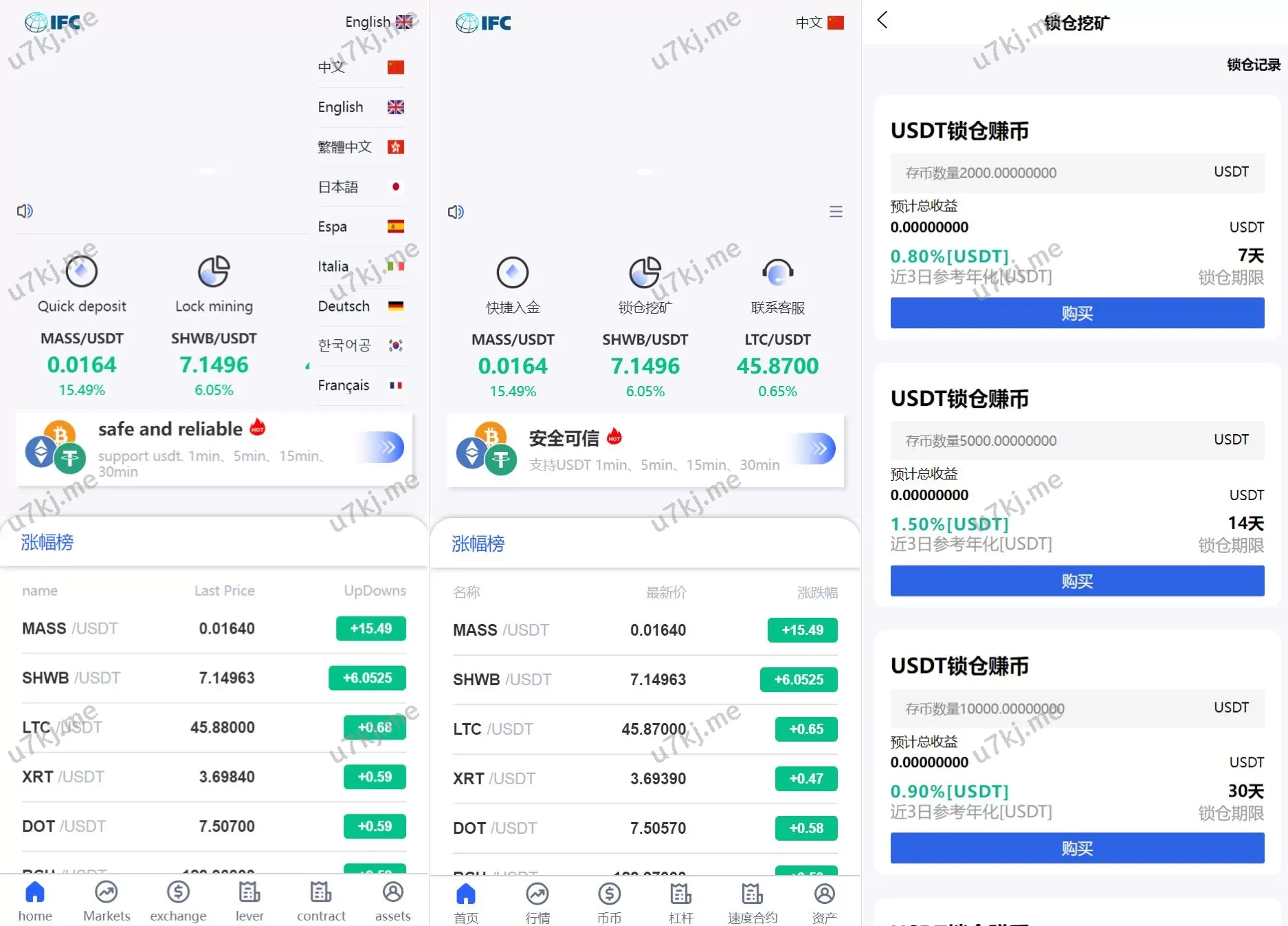 UI多个语言交易所/锁仓挖矿/币币秒合约交易所/双端源码
