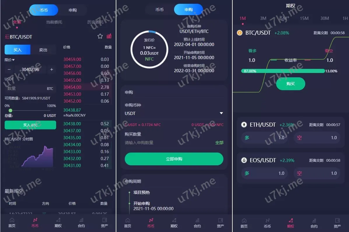 - 合约交易:支持杠杆交易、秒合约、永续合约
