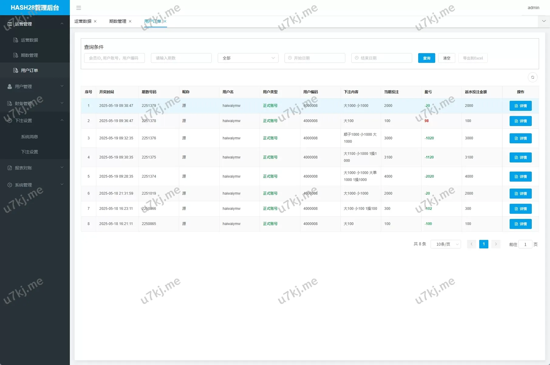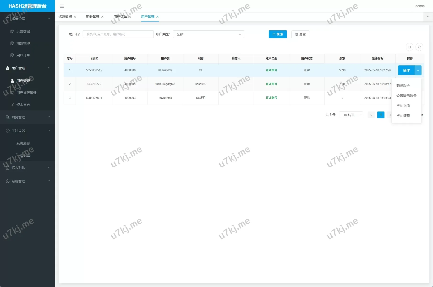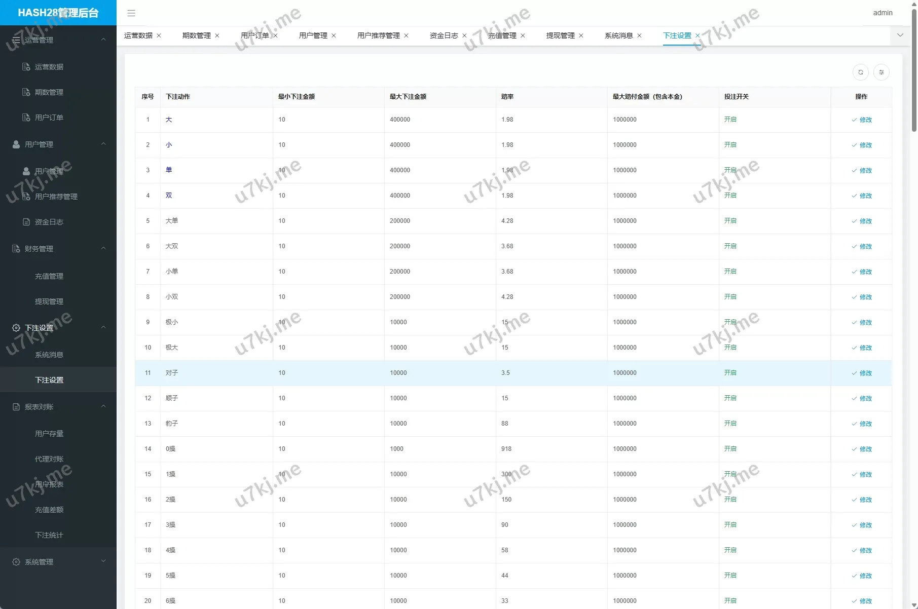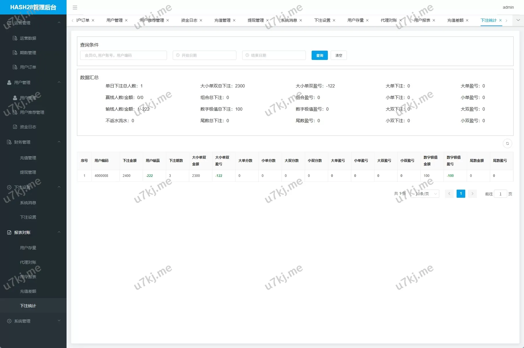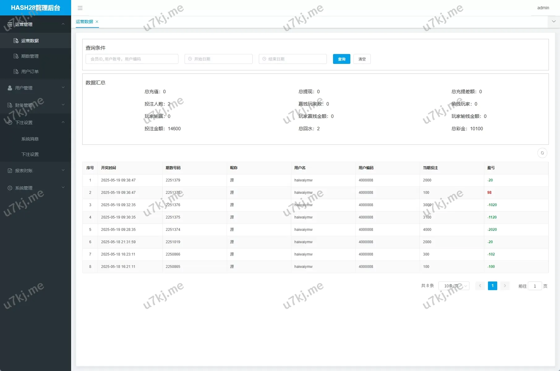 - 后台数据控制台:查看用户下注、输赢报表、上下分管理