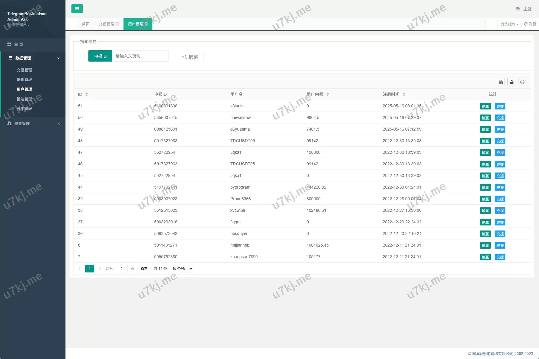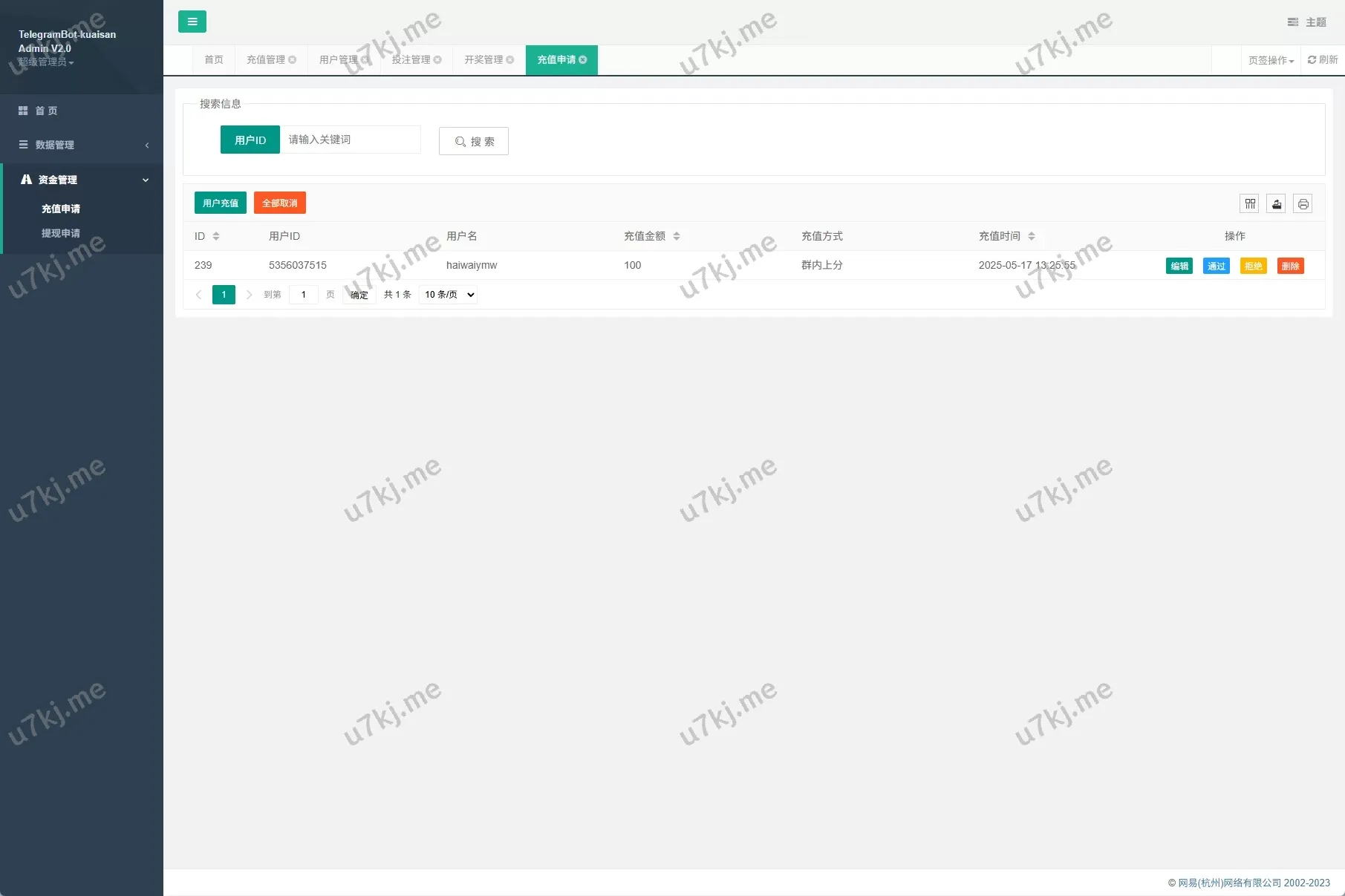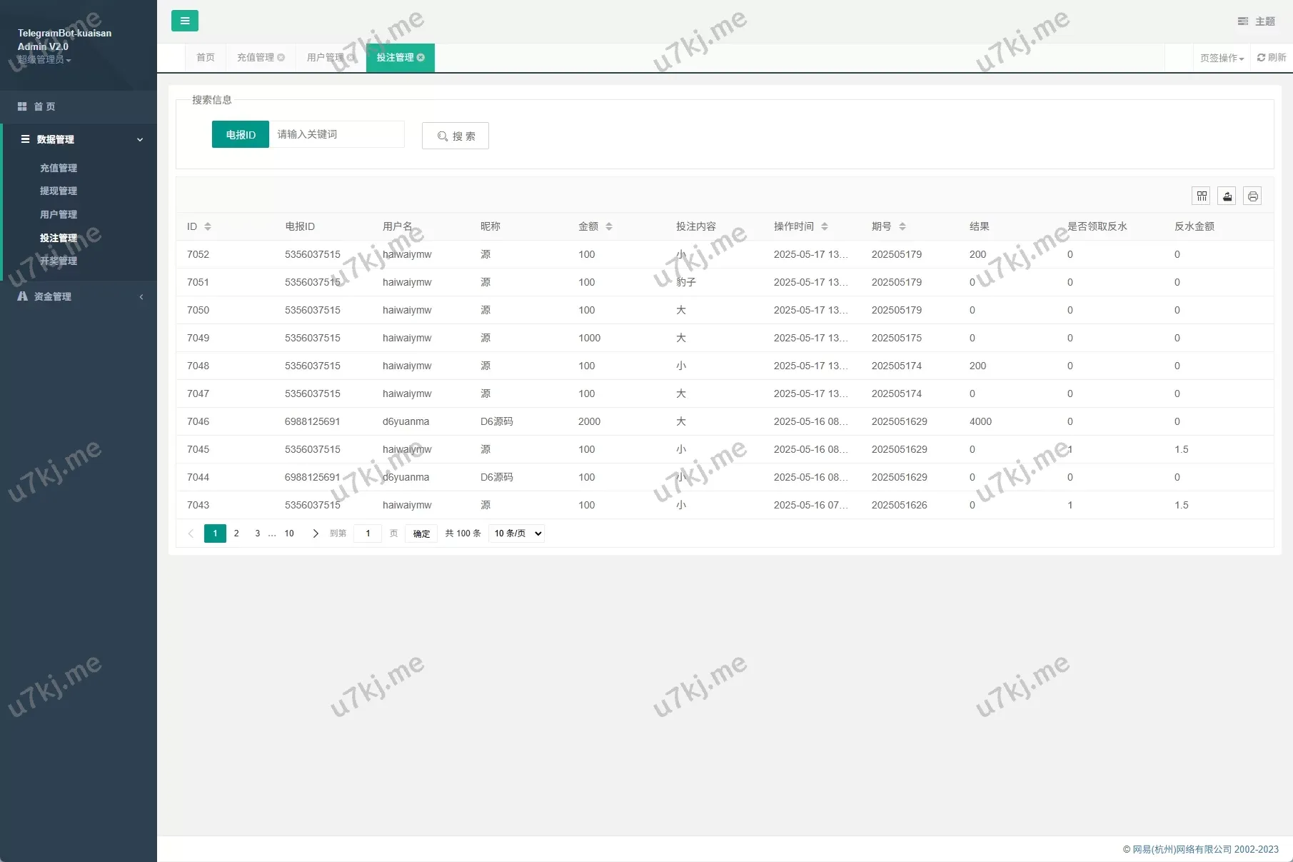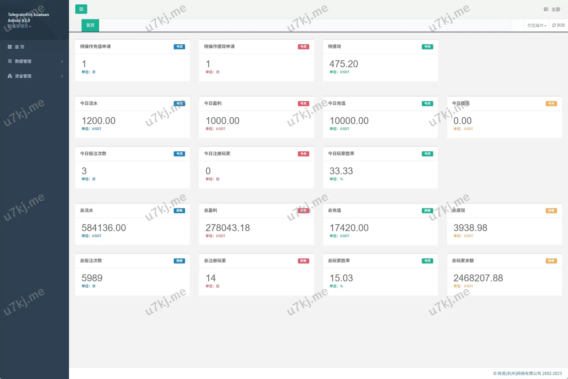 - 后台支持手动上下分、数据统计、会员管理