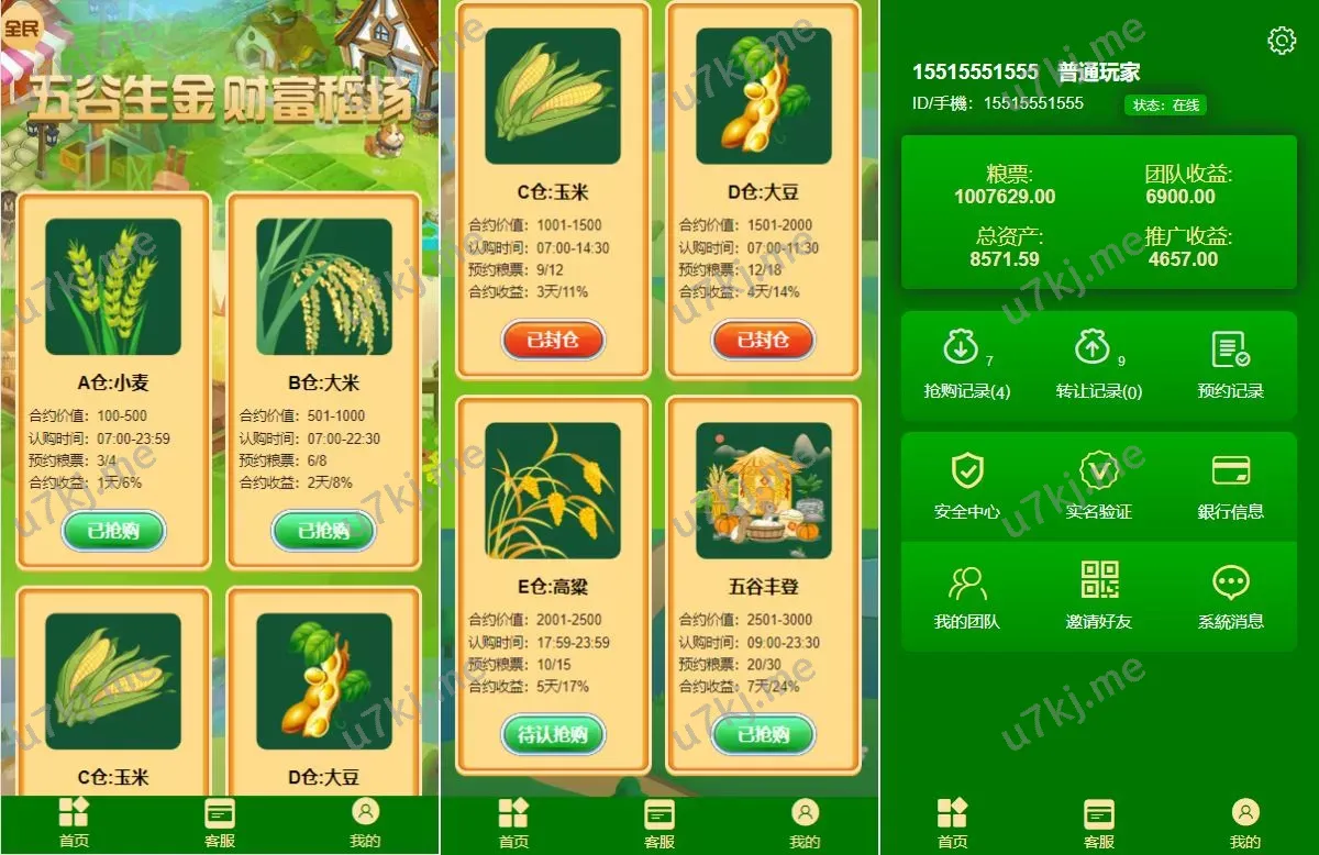 五谷生金投资理财源码/自由买卖交易/理财源码 🌟 主要功能亮点 ✅ 五仓抢购模式:严格控单,每天五个时段抢购,不同仓位对应不同收益率✅ 持仓溢价收益:抢到合约即享受固定周期的高额收益✅ 会员自由买卖:支持会员之间自由交易,流通灵活✅ 推广奖励制度:直推最高可达15%,团队奖励分级递增✅ 粮票兑换机制:推广收益可兑换粮票,用于后续抢单 📌 适合投资理财模式,严格控单,玩法成熟,收益清晰 精品源码 项目投资理财