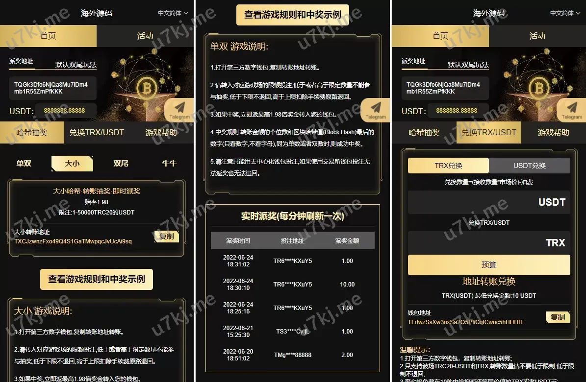 🔹 多种游戏玩法:支持多种哈希竞猜玩法,包括牛牛、单双、大小、双尾等,提供多样化的选择,吸引不同类型的用户。