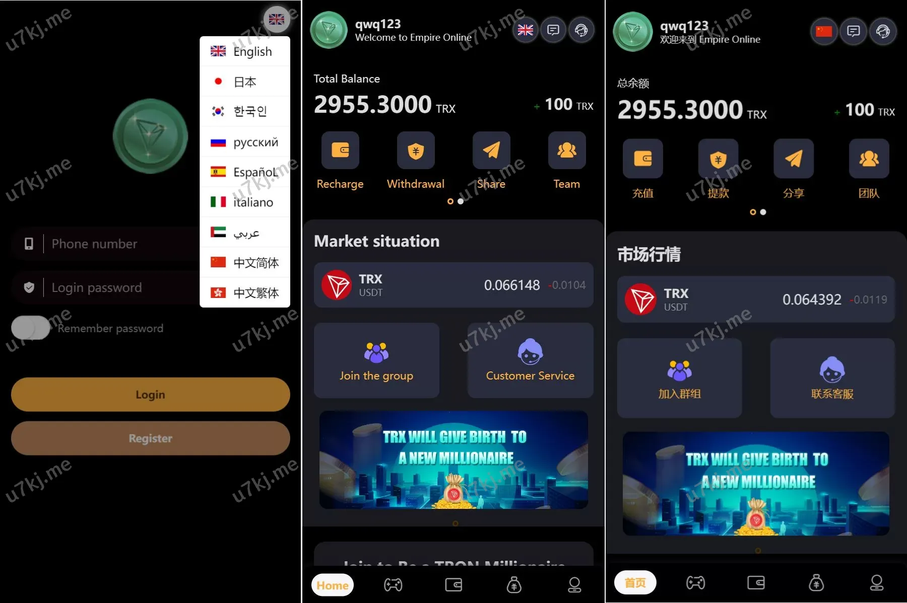 🔹 充值与自动到账:支持TRX和USD₮充值,充值资金自动到账,提升用户体验,操作简便