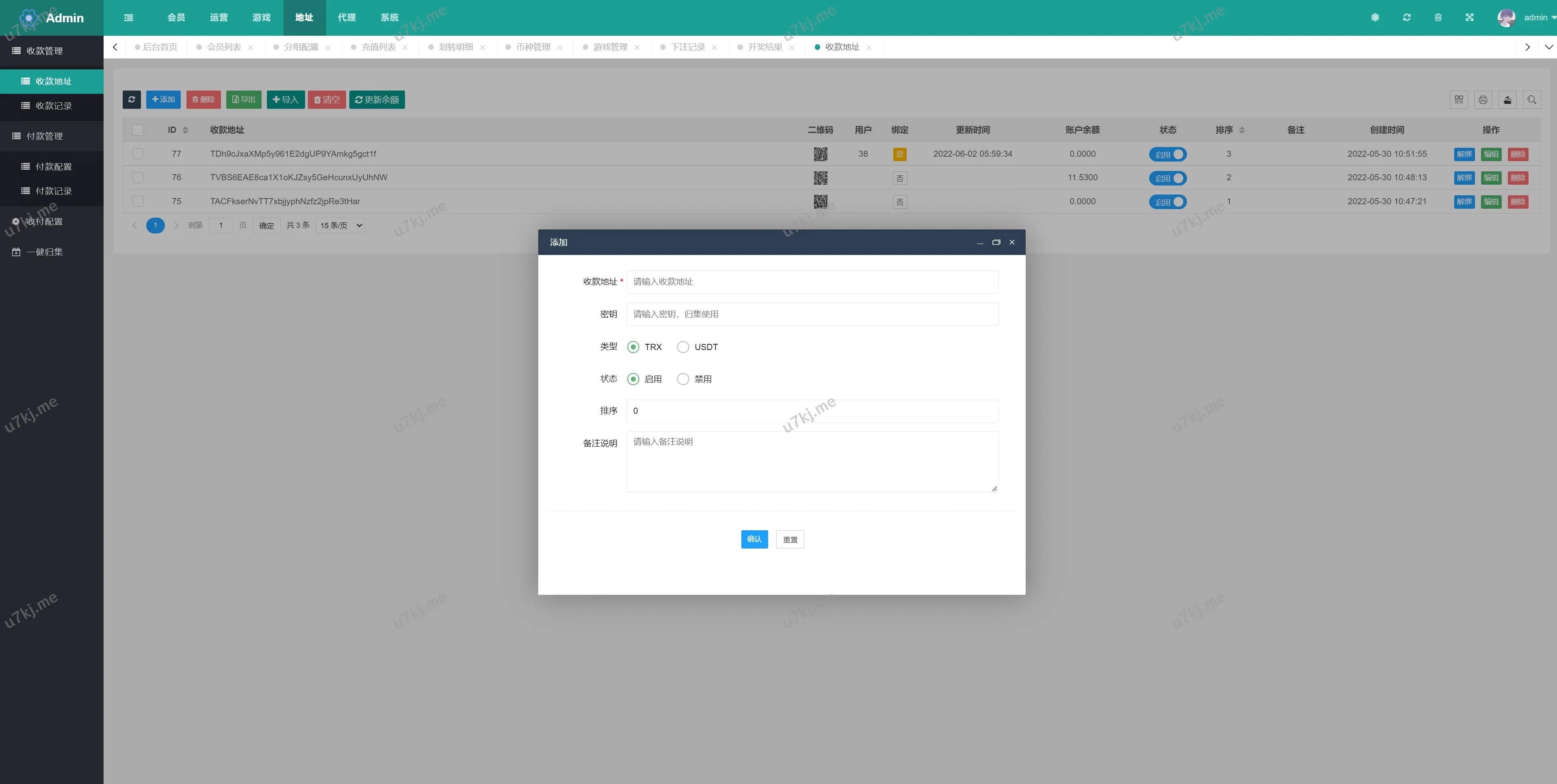🔹 收款地址归集:源码支持多个收款地址的配置,并且一键归集充值资金,方便管理