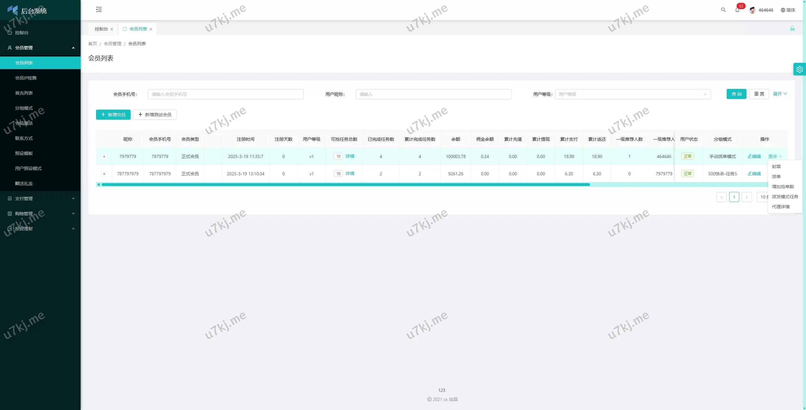 抢单刷单源码/手动派单/分组模式/余额宝/总代理/代理源码 主要功能亮点:介绍多端抢单刷单源码,前端、代理端、总代理端及后端均采用VUE开发,API端基于PHP开发。源码支持分组模式和手动派单模式,派单功能仅限代理端操作。源码还内置余额宝功能,支持代理管理,并可灵活设置总代理权限。 技术栈: 前端:VUE 代理端:VUE 后台:VUE API端:PHP 功能完整,适合,全开源并带有源码和搭建教程。 抢单刷单源码