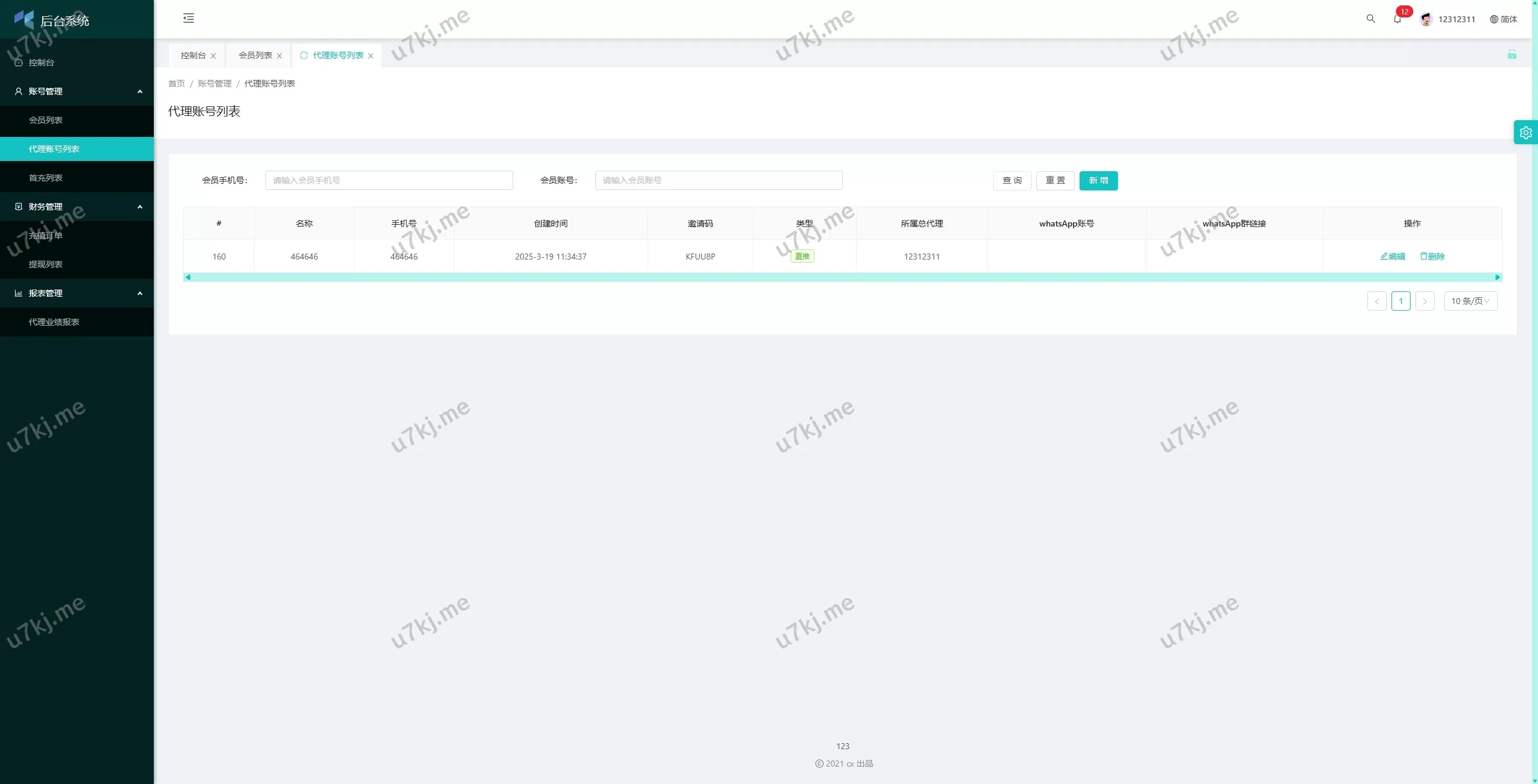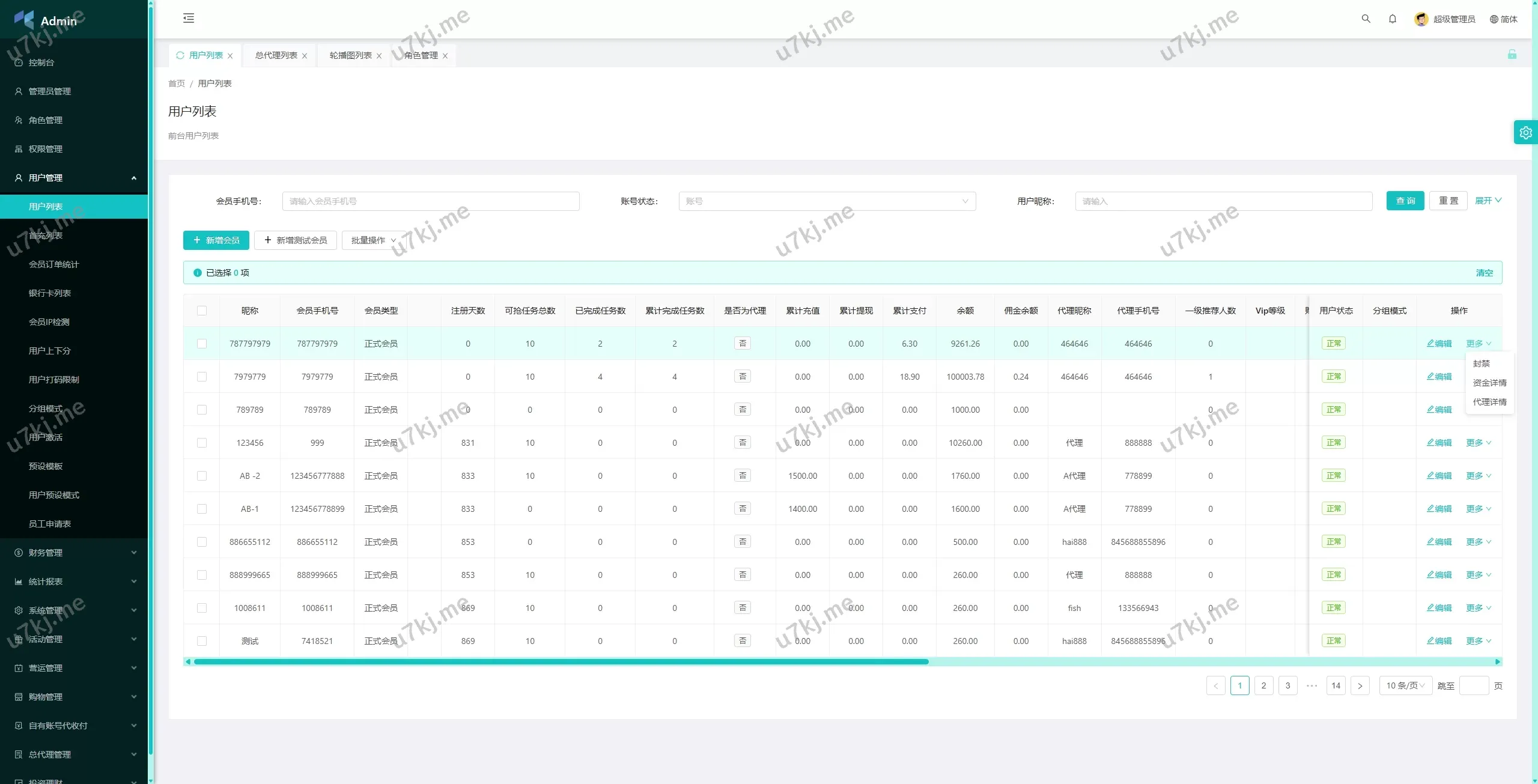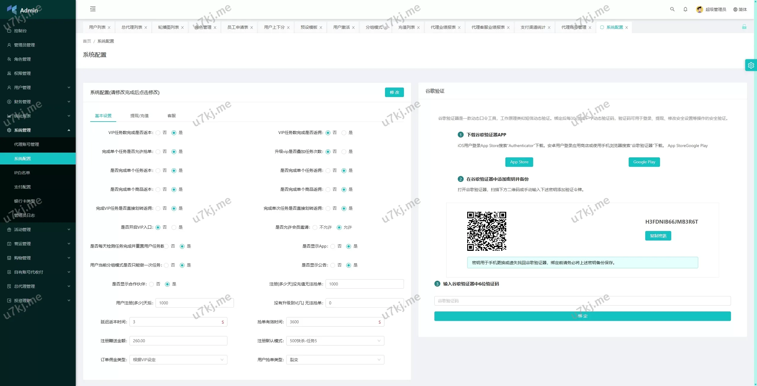 ✅ 代理管理:支持总代理和代理端的管理功能,管理员可控制代理权限。