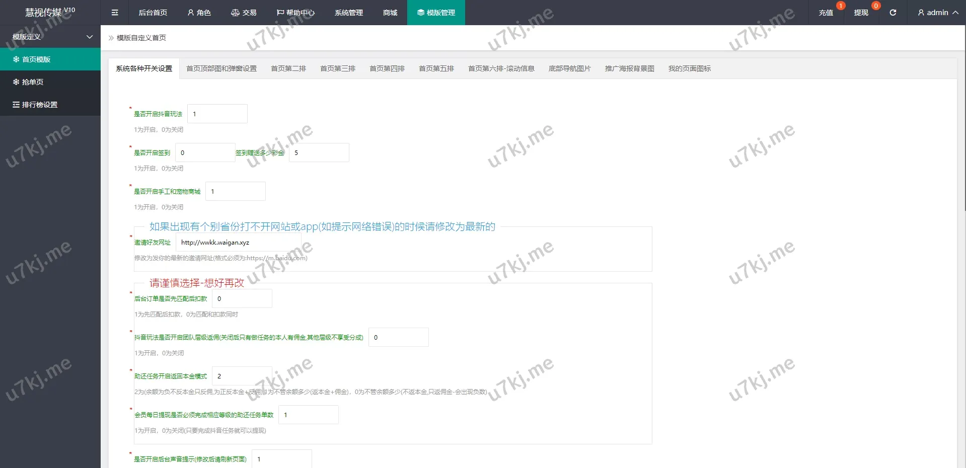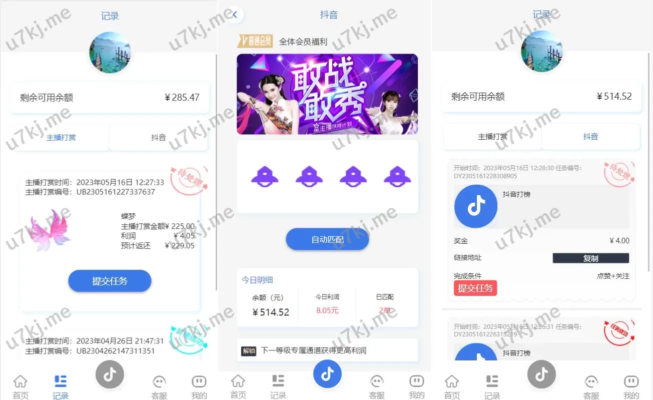新UI抖音打赏抢单刷单源码/抖音任务源码/手动自动抢单刷单源码 主要功能亮点 ✅ UI设计:重新定制的前端UI,提升用户体验,界面更简洁、流畅✅ 多种刷单玩法:支持传统刷单玩法和抖音任务玩法,灵活多样✅ 手动与自动刷单:后台可设置用户进行手动刷单或自动刷单,满足不同需求✅ 新增功能:源码新增多个功能模块,增强源码的扩展性与实用性✅ 多个语言支持:前端默认中文,支持二开其他语言,适配不同地区市场 📌 源码适用于抖音任务及刷单玩法,功能全面,操作简单,适合各种用户需求 抢单刷单源码