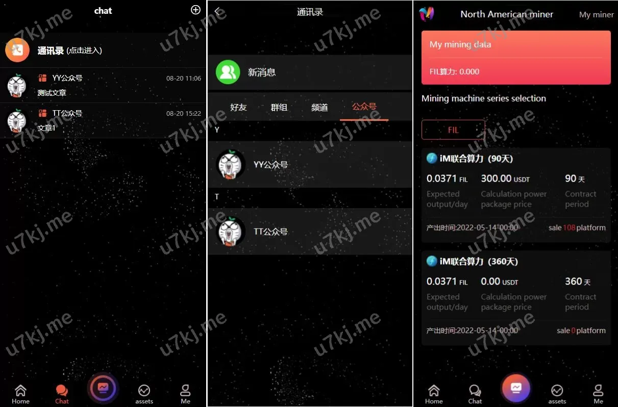 双语言的矿机投资源码,USD₮在线充值,云算力投资获取收益,矿机可以用户相互转送,源码附带聊天源码