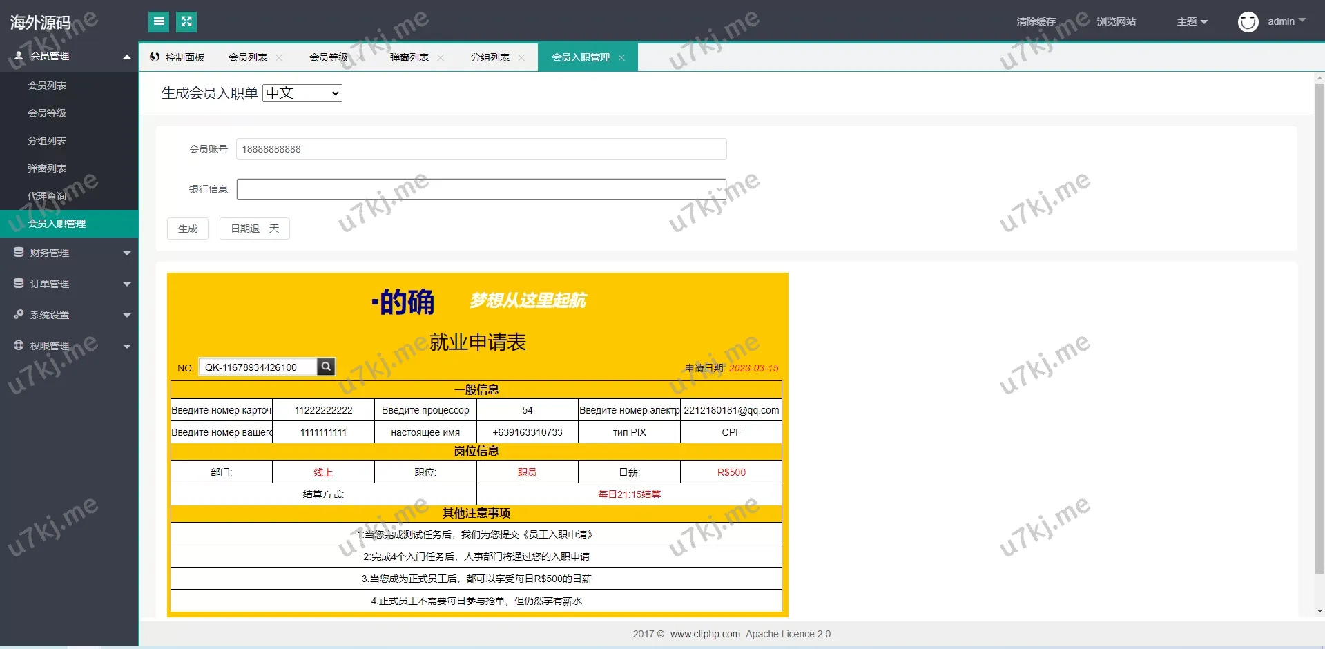 抢单刷单源码源码/分组联单控/订单自动匹配源码 主要功能亮点 ✅ 分组联单控制,智能匹配订单,优化派单逻辑✅ 入职生成功能,支持自定义生成入职信息✅ 订单编辑、续期、解冻,灵活管理订单状态✅ 前端多个语言支持,自带多个语言包,可自由添加✅ 后台可设置默认语言,支持关闭前端语言选择开关✅ 源码稳定高效,运行流畅不卡顿,满足市场需求 📌 强大功能,精准匹配,高效管理,一站式抢单刷单解决方案! 抢单刷单源码
