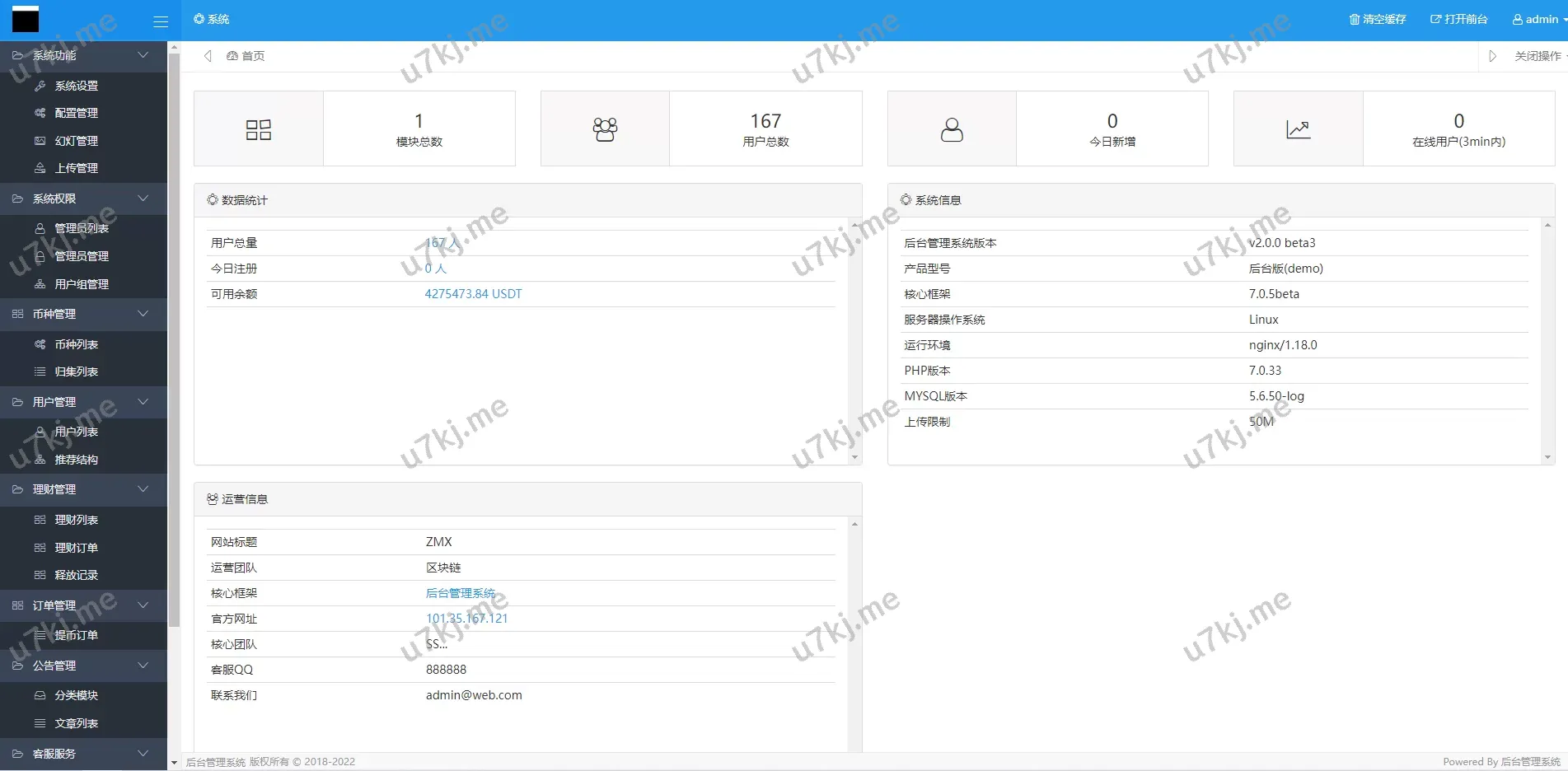 用户管理:由于链上授权登录用户无账号密码,后台支持一键登录,可查看用户信息,
