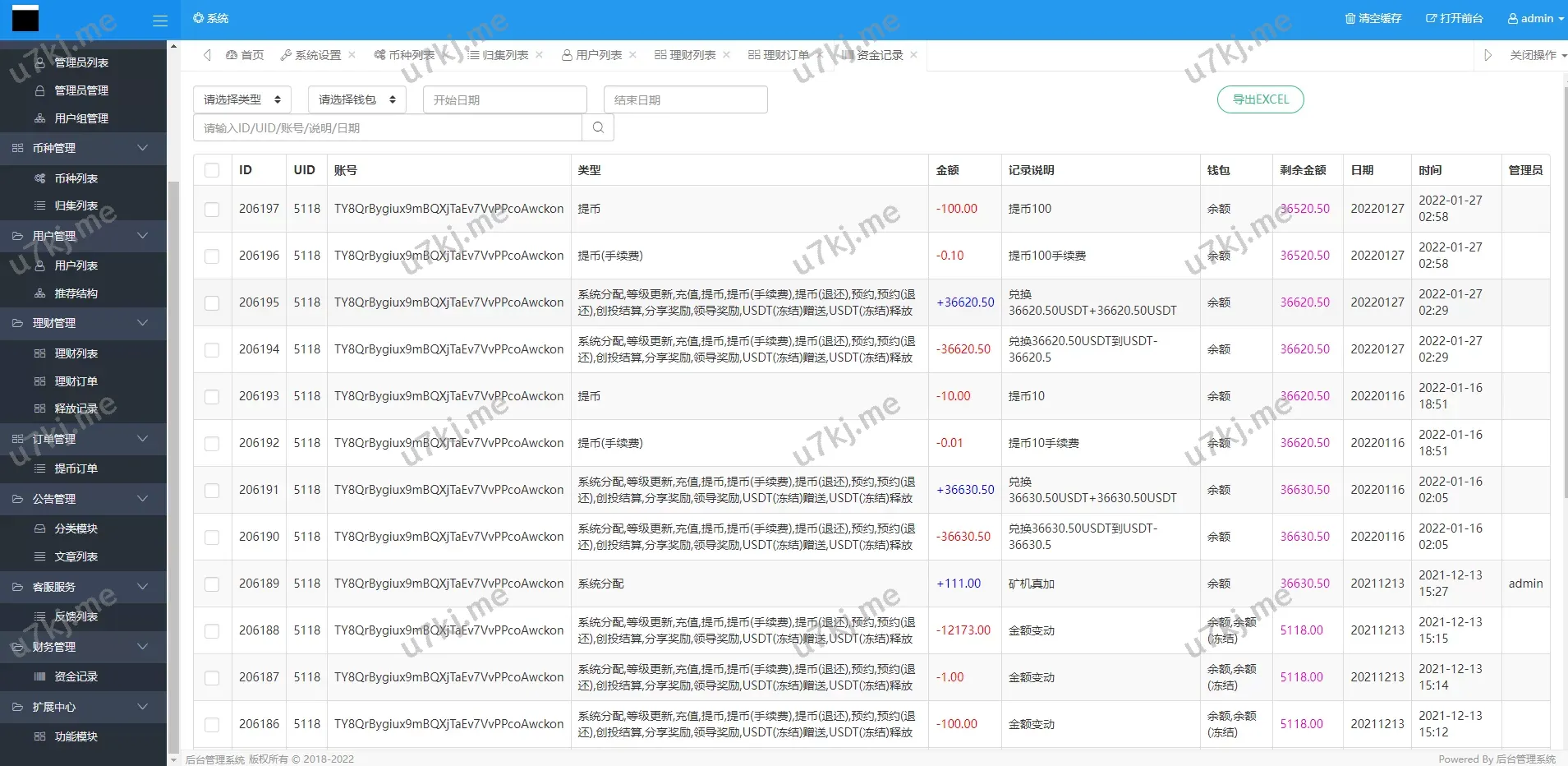 账单明细:每一个用户的收益明细和资金流水可明确查询