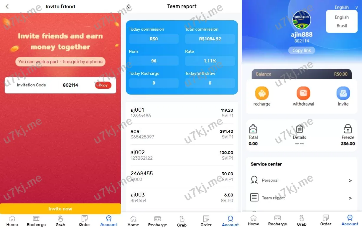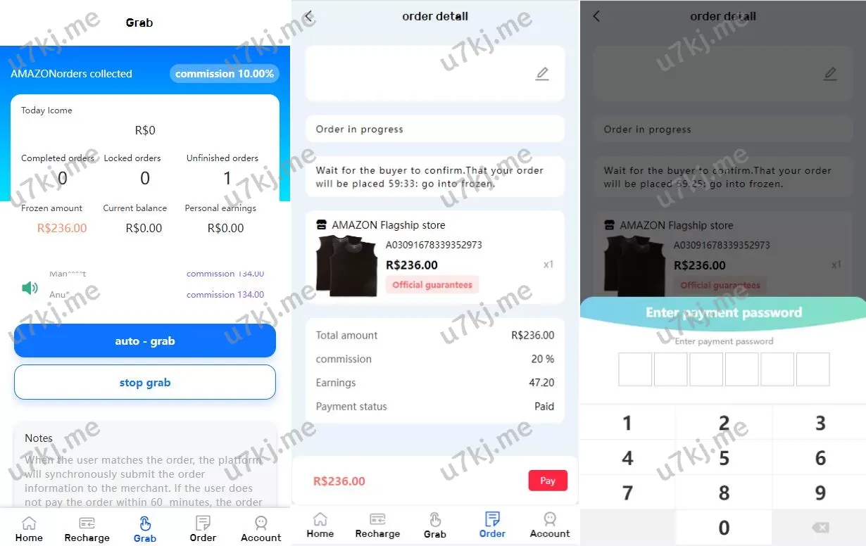 UI多个语言亚马逊抢单刷单源码/订单自动匹配源码 主要功能亮点 ✅ 二开前端UI,优化手机端加载速度,使用更流畅✅ 支持英语&葡萄牙语,可拓展多个语言,适应国际市场✅ 独立代理后台,支持邀请功能,可创建团队,获取更多佣金✅ 会员升级源码,用户可通过任务或邀请机制提升等级✅ 自动抓取亚马逊订单,可自由控制抢单/任务模式✅ 源码开源,无加密、无后门,支持 📌 适用于跨境电商刷单、抢单等运营模式,源码稳定,功能完善! 抢单刷单源码