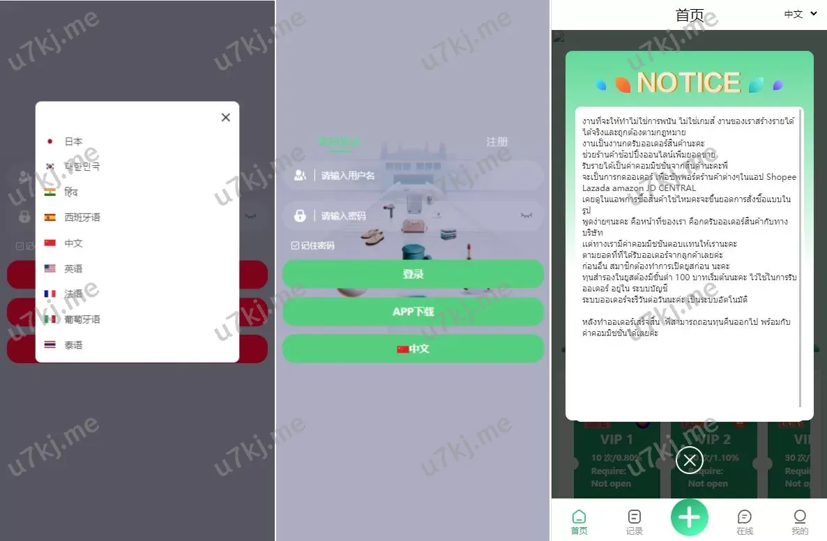 九套UI可切换抢单刷单源码源码/订单自动匹配/分组杀控/连单设置 🌟 主要功能亮点 ✅ UI风格更新:新增紫色、粉色、青色5套UI,其他包含红色、蓝色、黄色、黑色、绿色、橙色,共 9套UI 可自由切换✅ 9种语言支持,后台可 任意开关 语言设置✅ 前端九套UI自由切换,满足不同需求和市场✅ 订单自动匹配源码,支持 分组、百分比、固定值、连单控 等多种功能✅ 支持充值彩金 等灵活玩法✅ 可定制其它UI(需要额外预算) 📌 多种UI、多个语言、多功能,适合全球市场,满足个性化需求! 抢单刷单源码