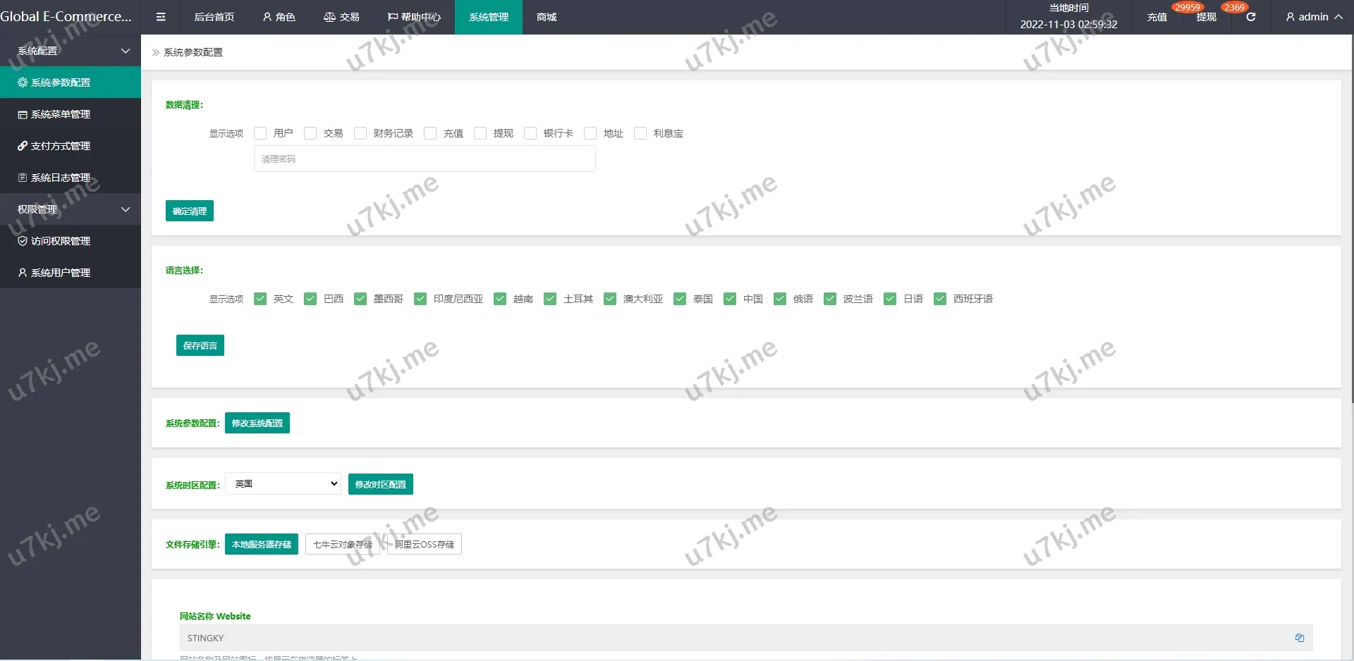 - 前端多个语言支持,后台可自由控制默认语言与时区